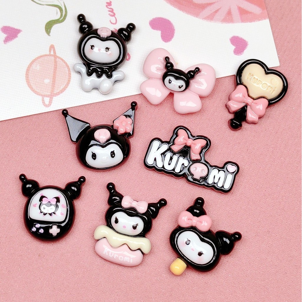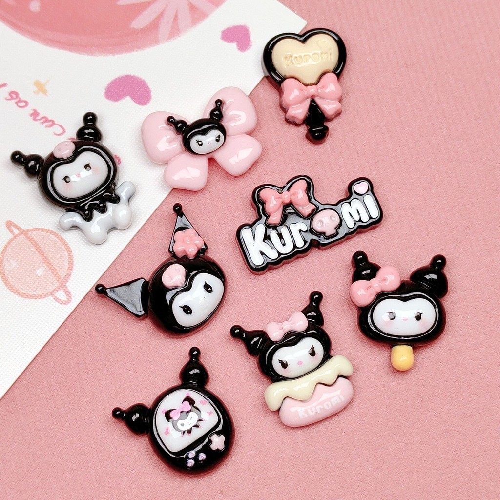 10 Pcs STICKER MINI CARTOON 3D BLACK KUROMI Stiker Glossy Free Resin Aksesoris Hiasan Deco Sticker DIY Lucu - B0451