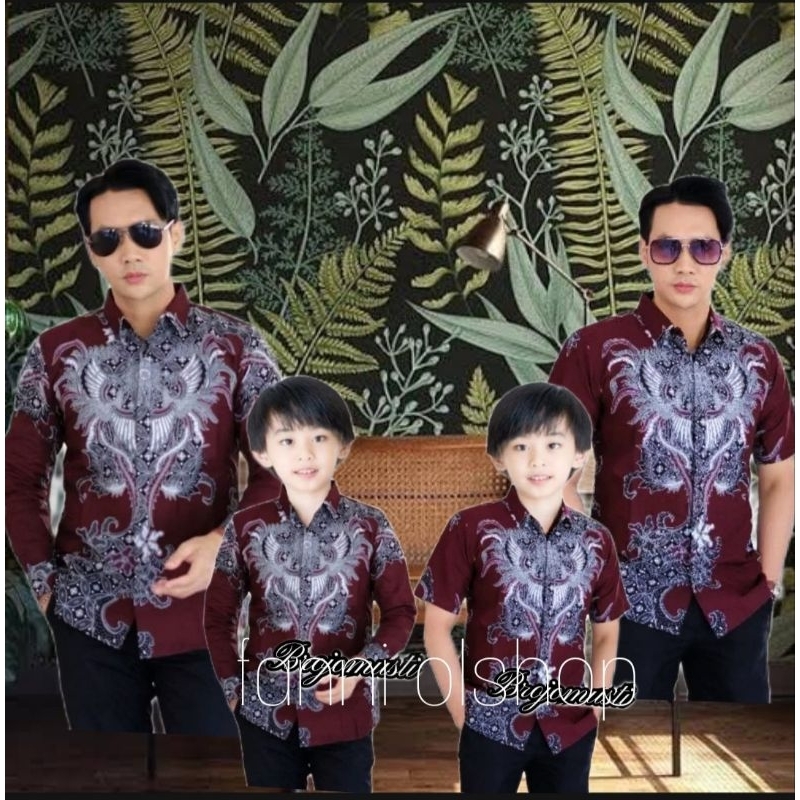 Baju Batik Couple Keluarga Ayah Ibu Dan Anak Laki-Laki Rahwana Maroon Size M L Xl Xxl