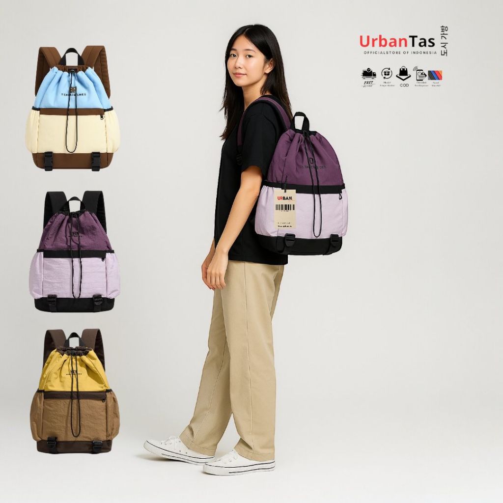 URBAN Tas Ransel Outdoor Unisex Drawst Korea Style | Backpack Casual Anti Air|Tas Sekolah Travel