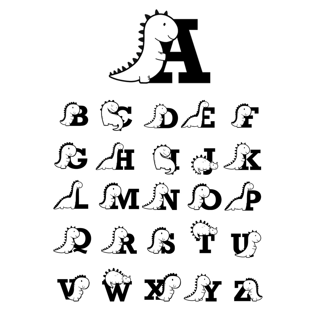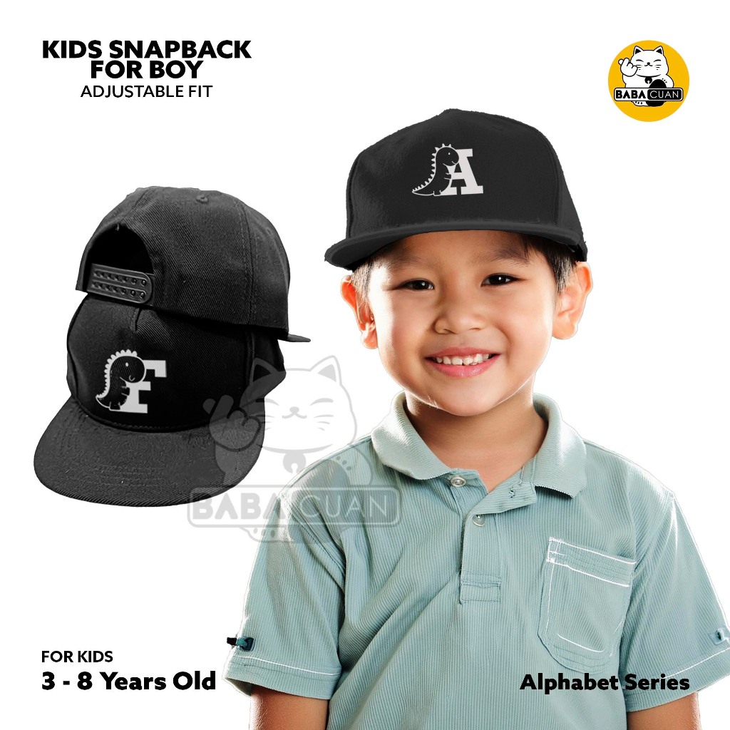 Topi Anak Snapback Wanita Hitam Alfabet Dino Huruf A Z