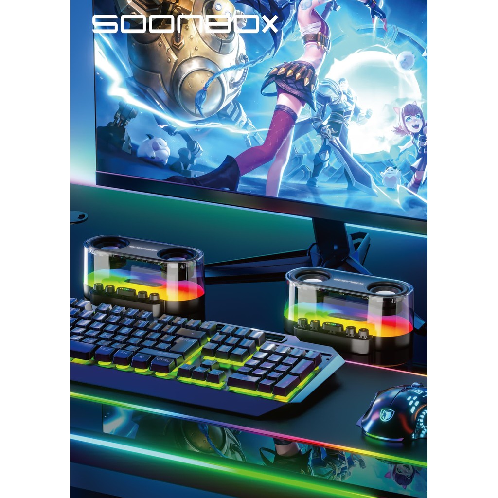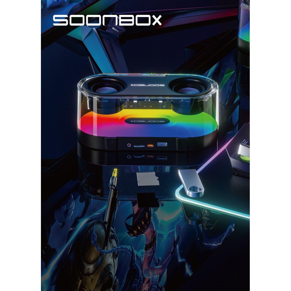 SOONBOX S302 Speaker Bluetooth 5.3 Portabel 20W Suara 360° LED Light Bass Sound + Mechanical Button