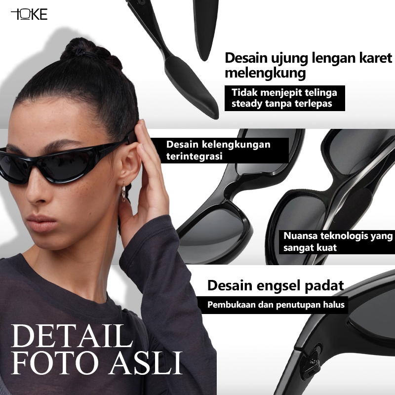 [TERLARIS]Kacamata Sport Cat Eye Trendy Y2K Retro Warna Hitam & Perak, Anti Sinar UV & Radiasi Outdoor Unisex Pria Wanita