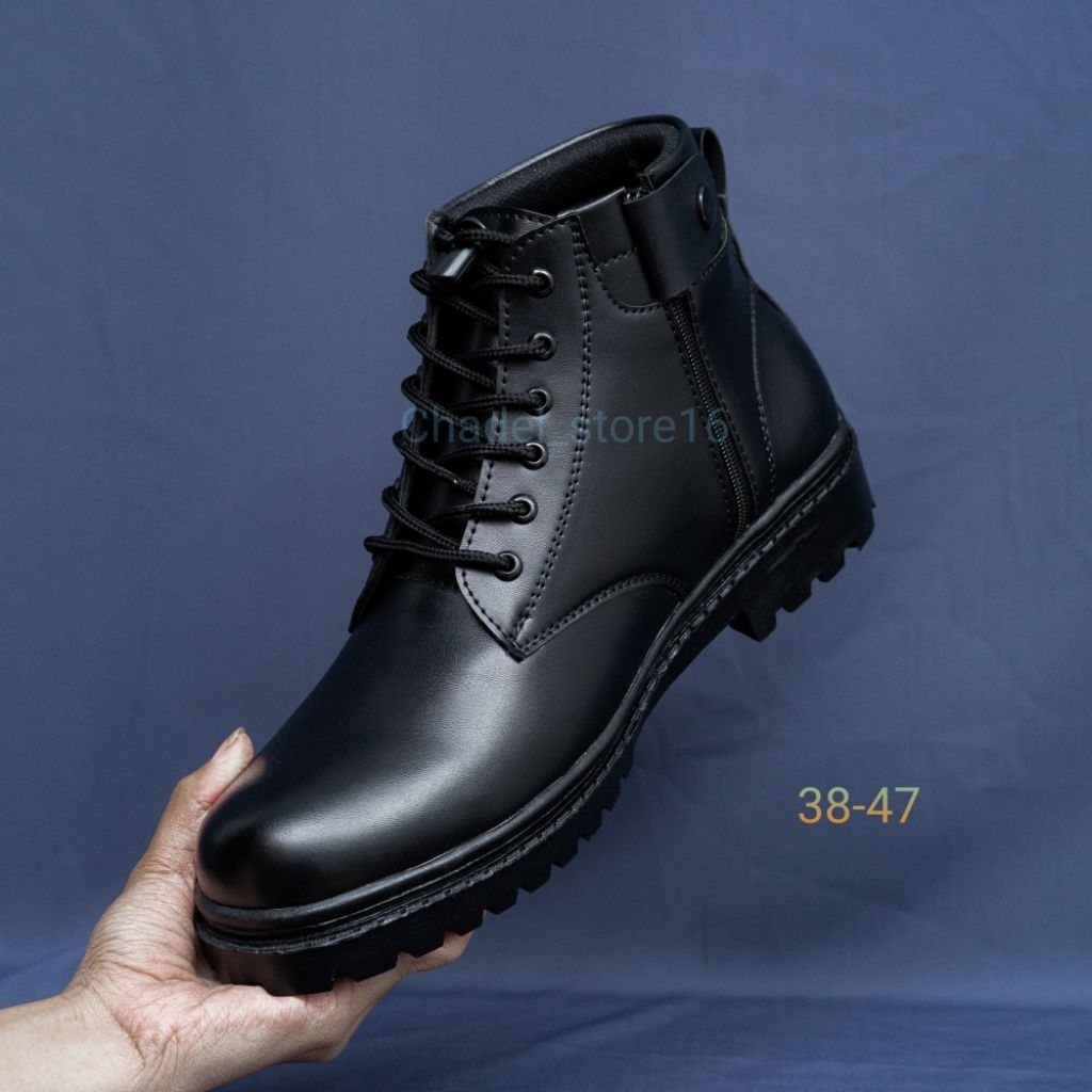 Sepatu Pdh Pantofel Pria Resleting Dinas Harian Kerja Polri-TNI Security Satpam Paskibra Guru Pesta Kuliah Hitam Mengkil