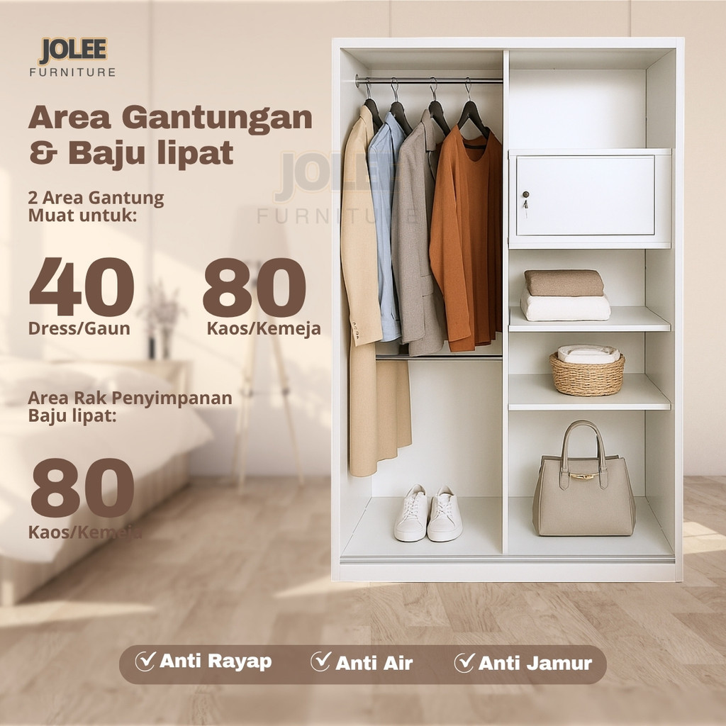 HI.quality-Lemari Pakaian Besi Lemari Pakaian Pintu ganda 85cm 2 pintu 1 Hanger Cermin Minimalis