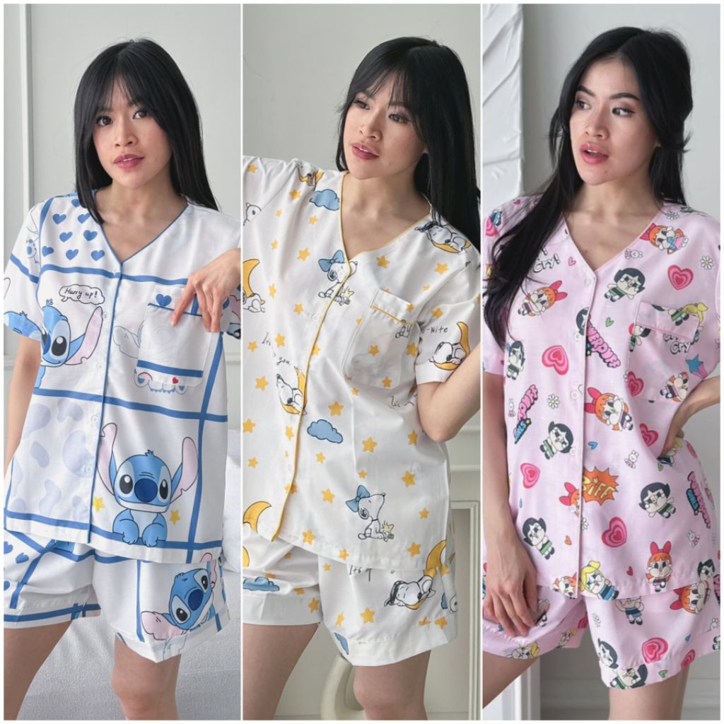 Baju Tidur Wanita CELANA PENDEK One Set Bahan Katun Halus / Piyama LD108 cm