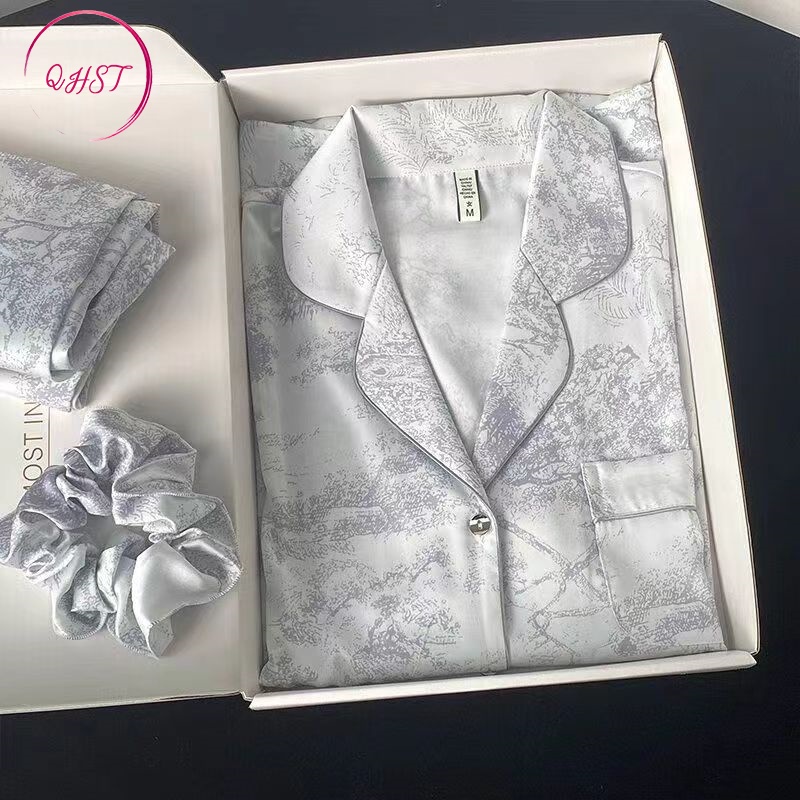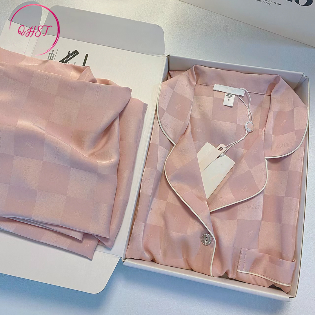 QHST Piyama Wanita Set Satin Kisi Merah Jambu Wanita Import | Pajamas Wanita| Baju Tidur Wanita Dewasa | Lengan Panjang
