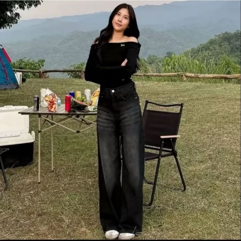 Celana Jeans Wanita High Waist Wide Leg Loose Fit Vintage Korea Streetwear Baggy Pants Kekinian