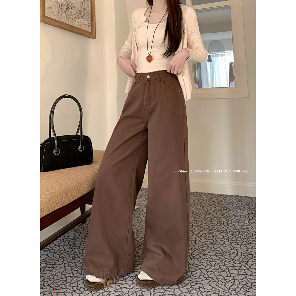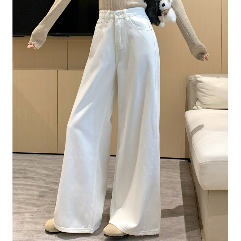 S-6XL Celana Jeans Panjang Wanita Korean Style High Waist Wide Lurus Solid Color