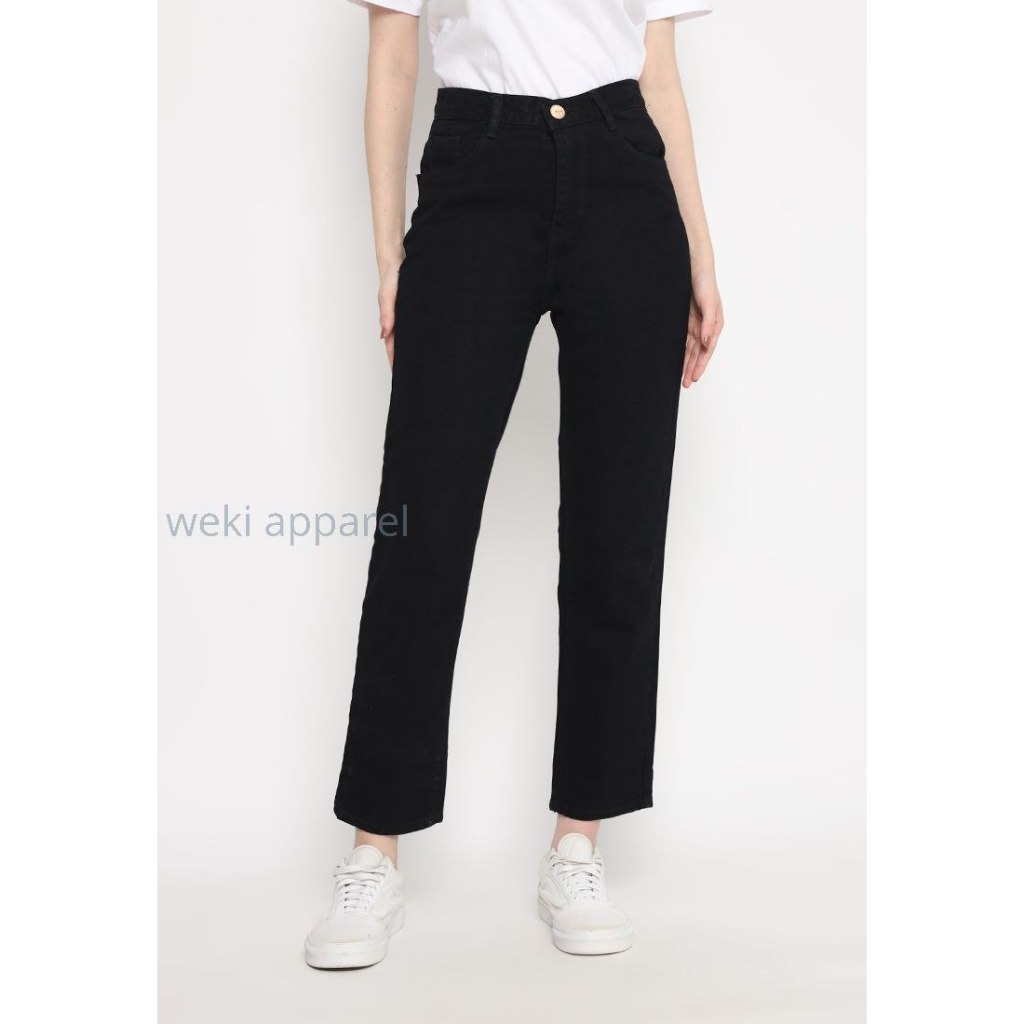 Celana Jeans Wanita Weki Jeans Boyfriend Wanita Straight Highwaist Retro