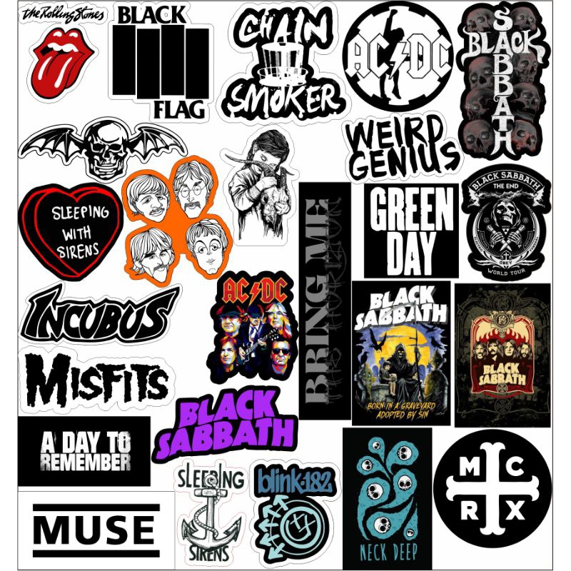 Stiker Pack series band isi 125pcs local dan luar bahan VYNIL anti air