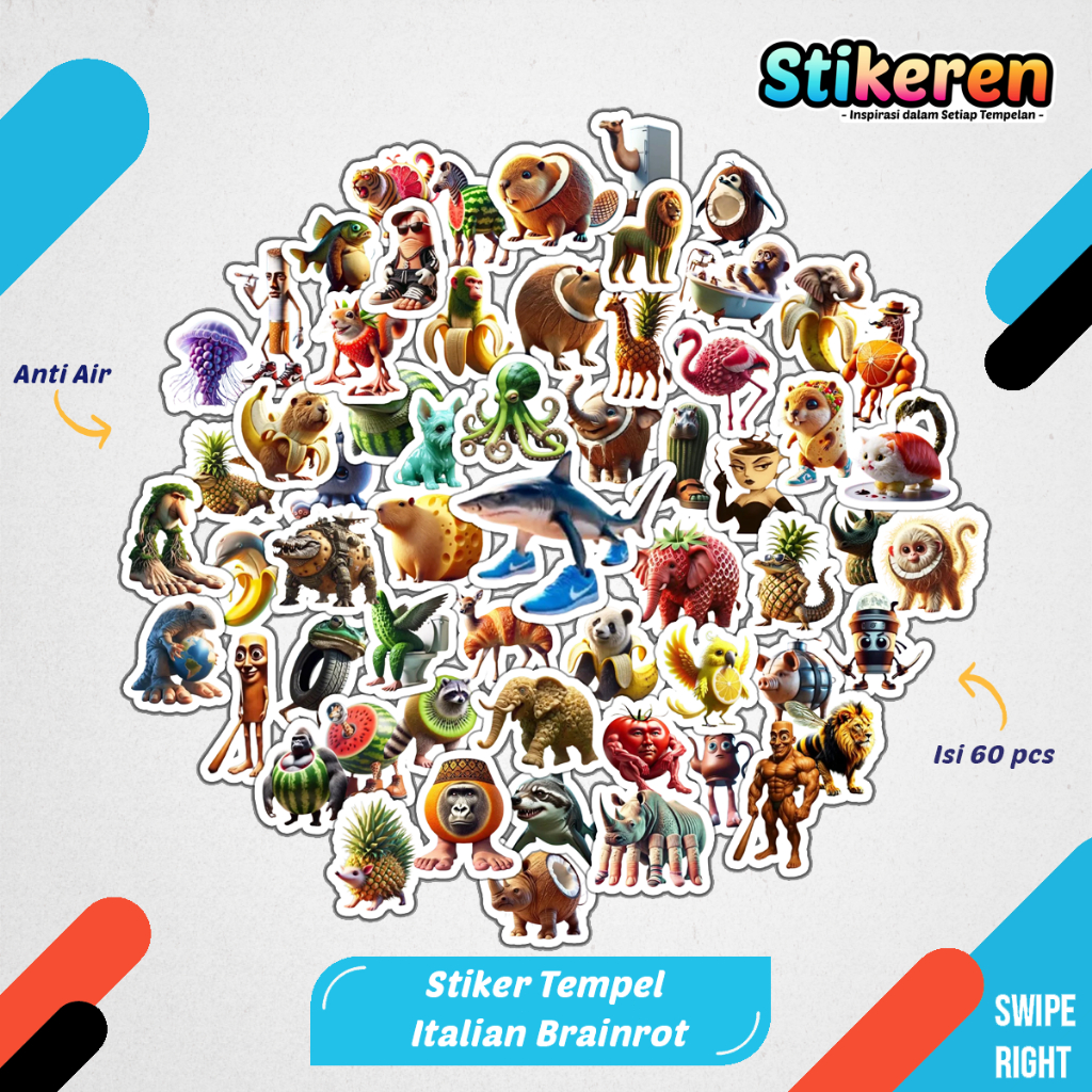 Stiker Kartun Brainrot Anomali Italia Paper Vinyl Dekorasi Laptop Koper Tumbler Kulkas DIY