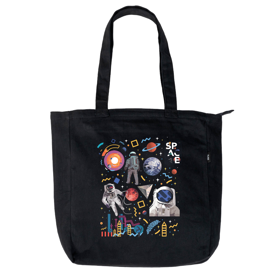 FLASH SALE Flade Studios Totebag Kanvas Hitam Resleting Tas Kuliah Pria Wanita Astronaut Series