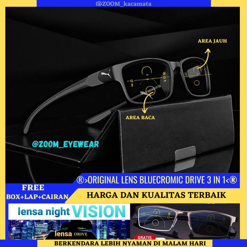 PROGRESIVE-(BLACK GREY)Kacamata Baca Progresif Jauh Dekat | Kacamata Baca Pria Lentur | Kacamata Baca Plus Antiradiasii