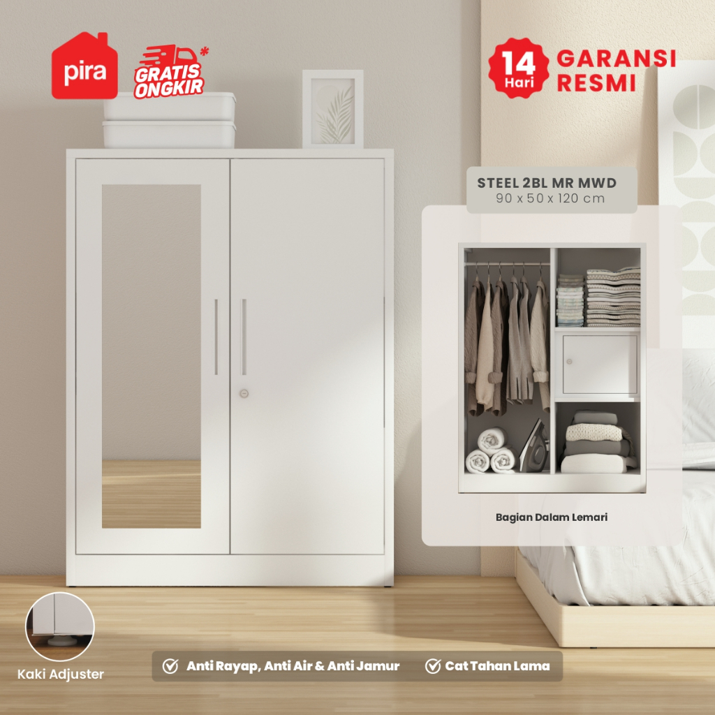 PIRA - STEEL 2BL MR MWD Lemari Pakaian Besi 2 Pintu dengan Cermin / Lemari Pakaian Anak