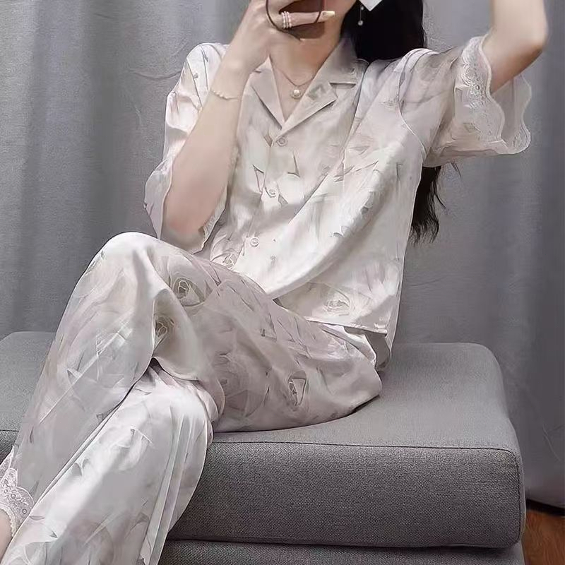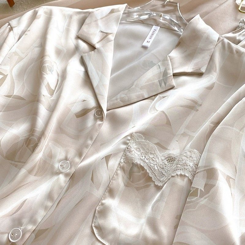 Baju Setelan Piyama Tidur Wanita Kekinian Renda Satin Motif Bunga Pakaian Rumah Wanita Korea Style Terbaru 2025