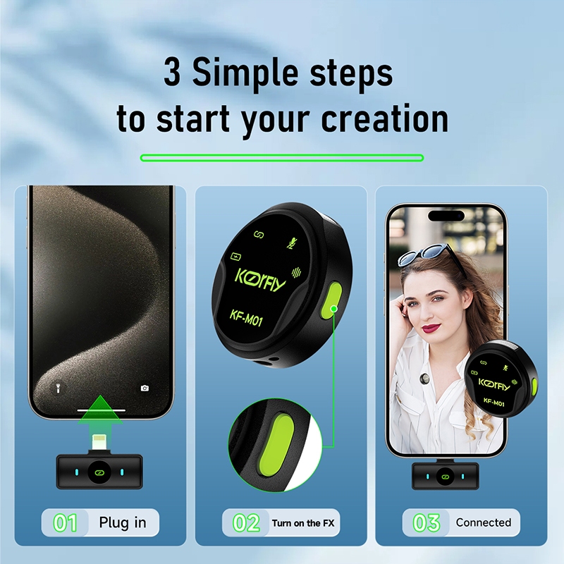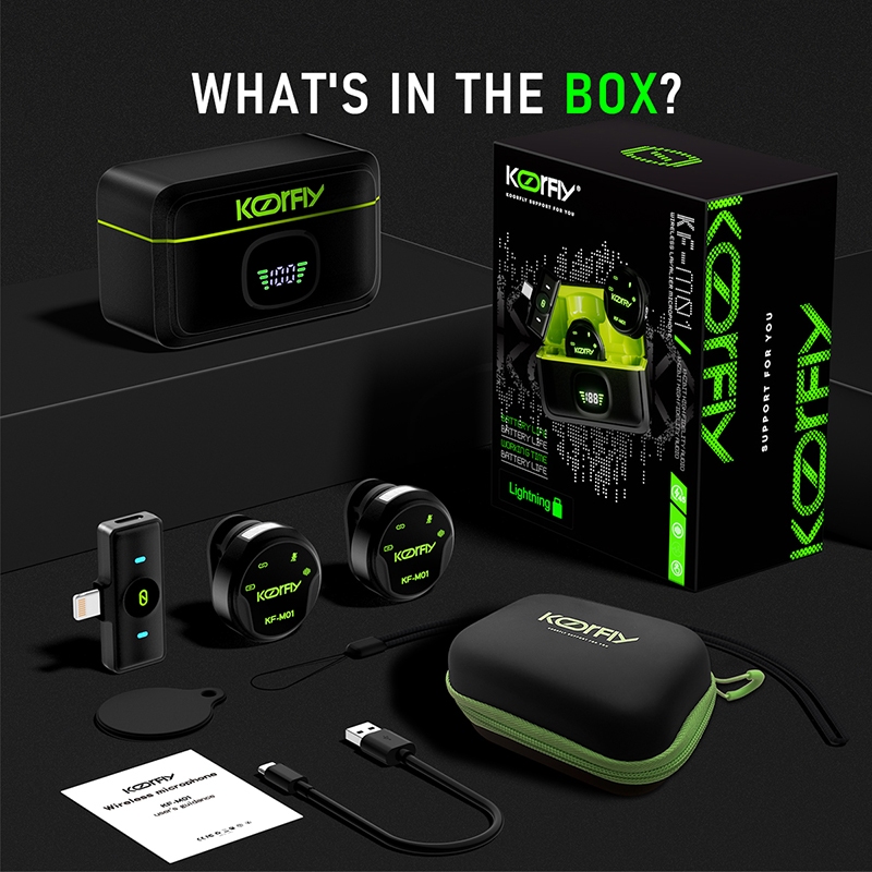 【Headphone Gratis】KOORFLY M01 Wireless Microphone Mikrofon Nirkabel Lavalier dengan Kotak Pengisi Daya Mini Dual Clip on