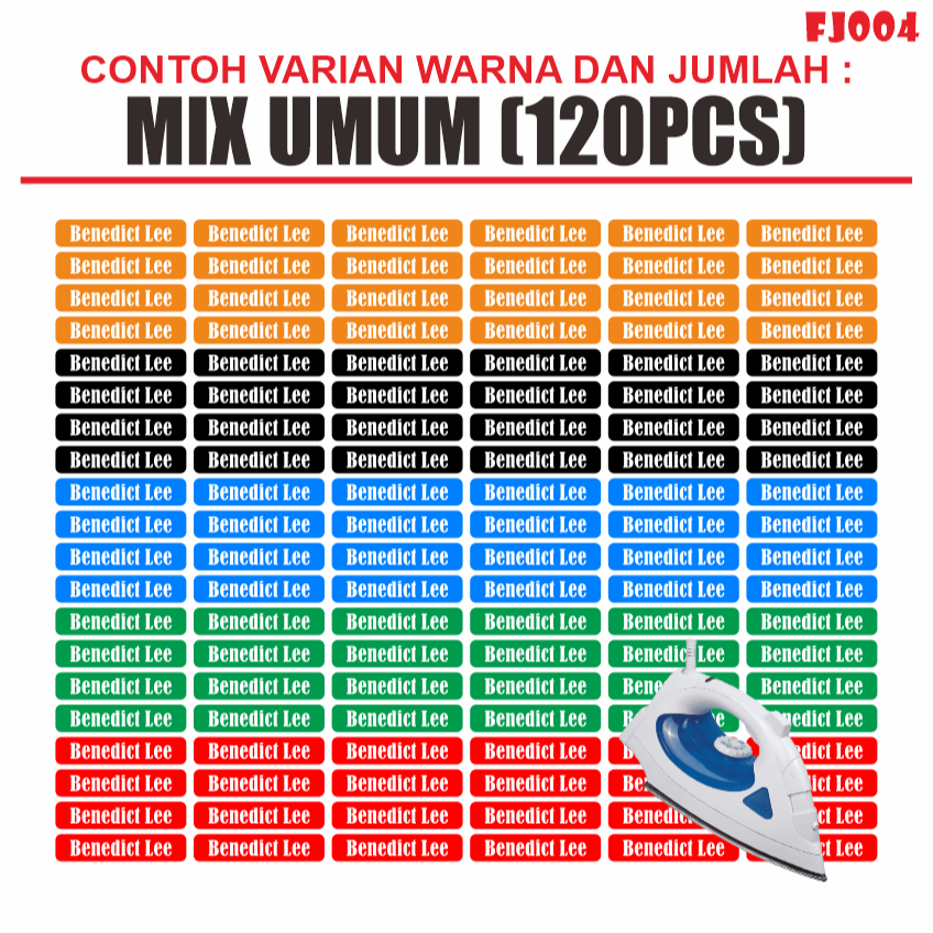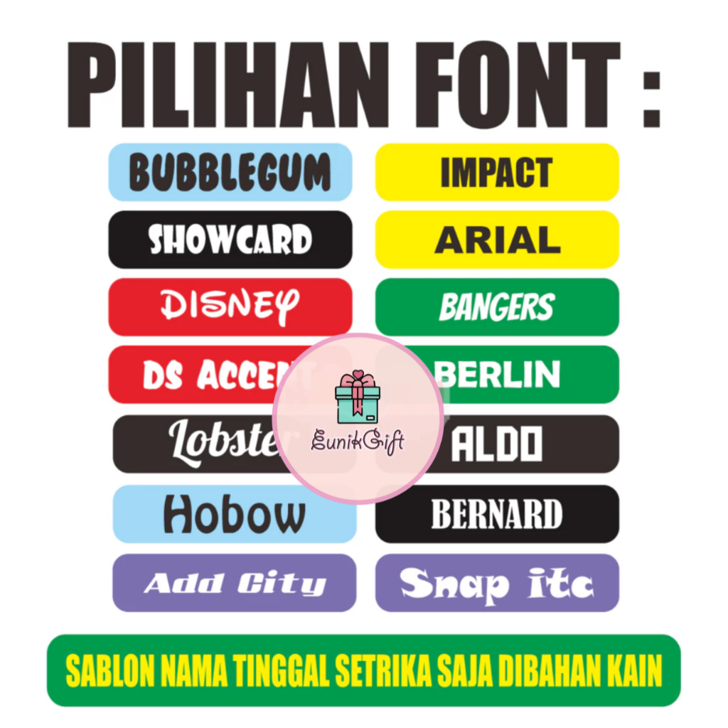 Sablon Setrika Nama (Isi 30,60,120pcs) Sticker setrika Nama Label