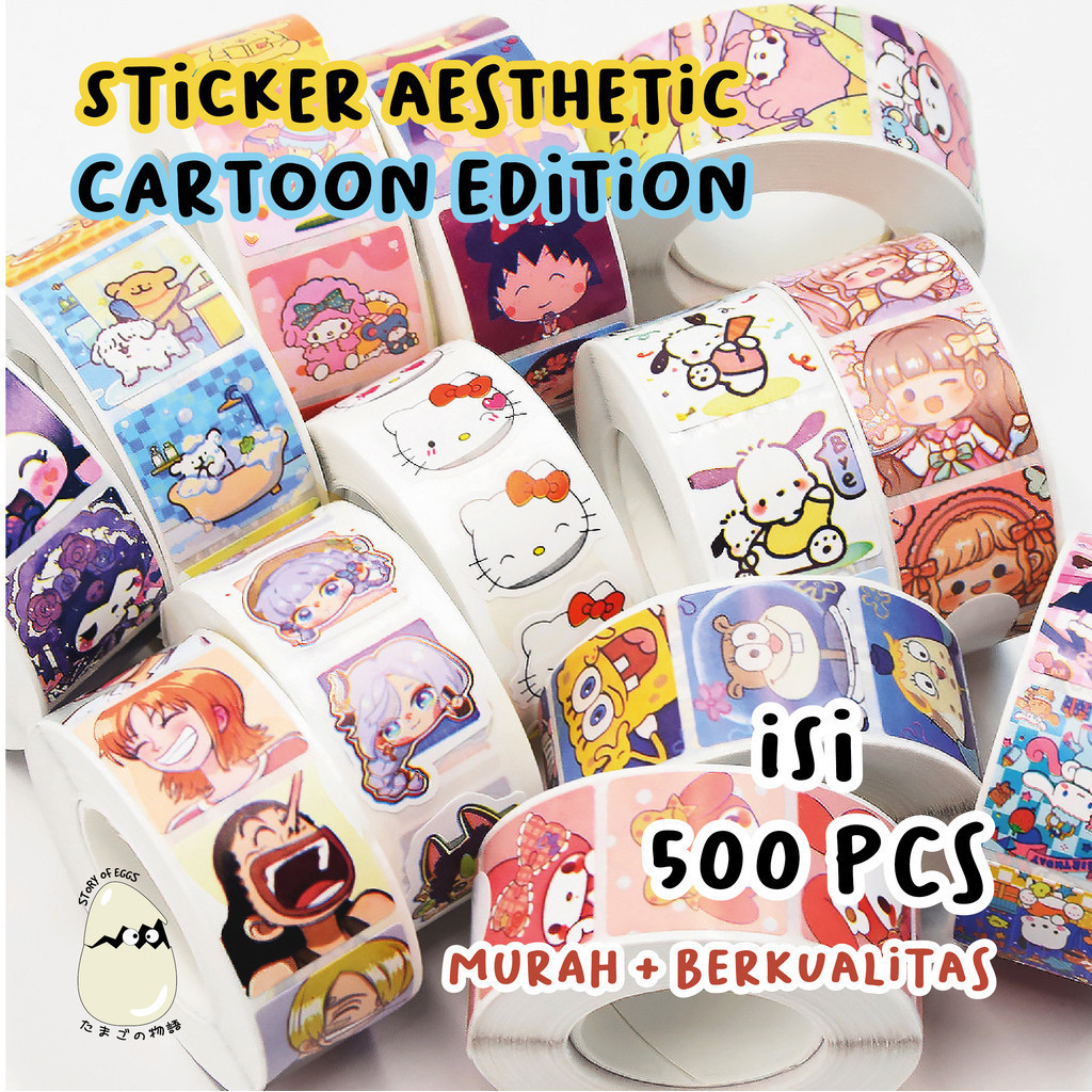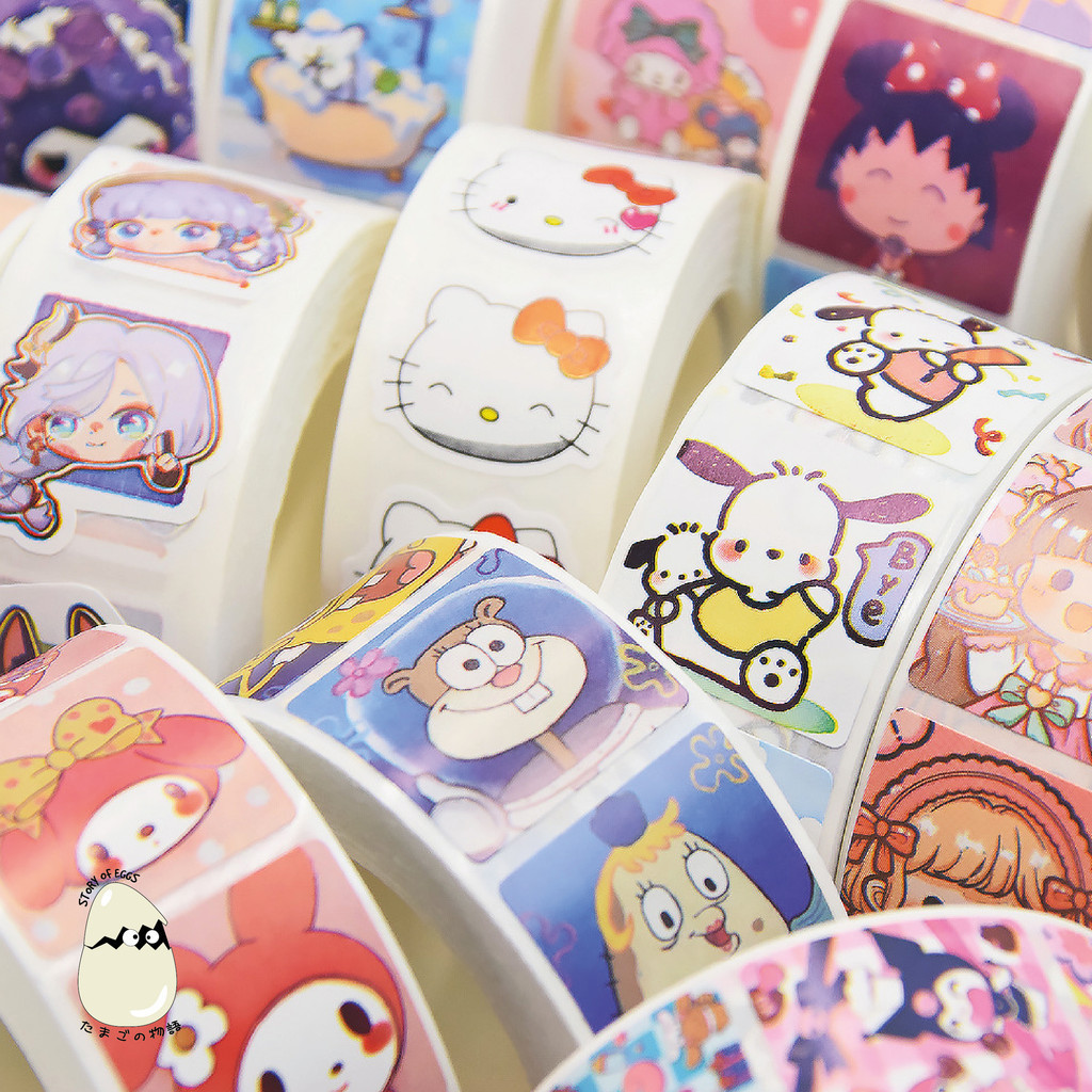500 pcs Anime Sticker Roll Melody One piece Kuromi Maruko Cute Aesthetic Washi Packaging