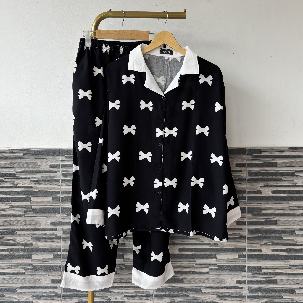 (Ld 120 Dan 140) Baju One Set Setelan Wanita Atasan Tangan Panjang Celana Panjang List Kombinasi Berkerah Rayon Premium