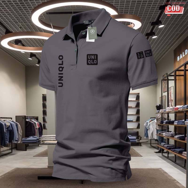 Baju Kaos Pria Dewasa Polo Shirt Pria Kerah Uniqlo Kiri Kanan & Lengan Hitam Premium