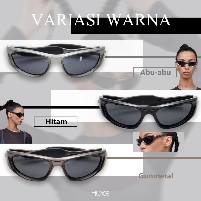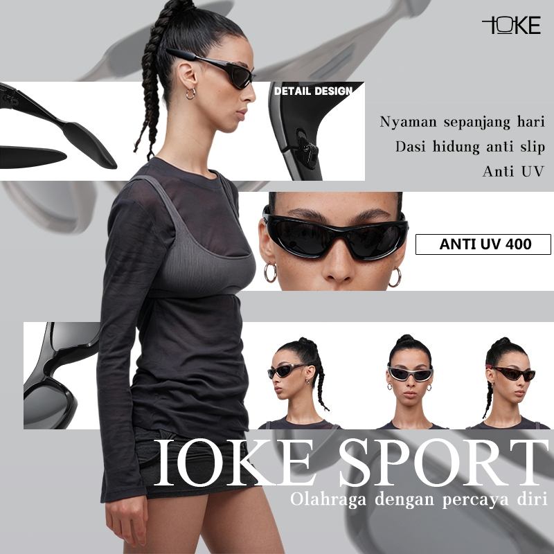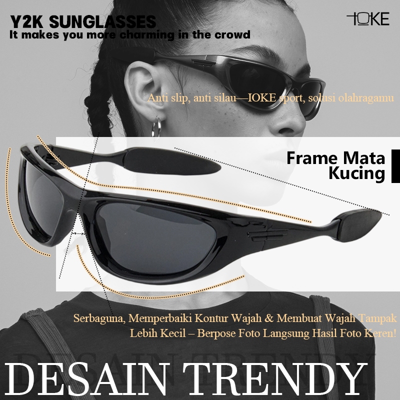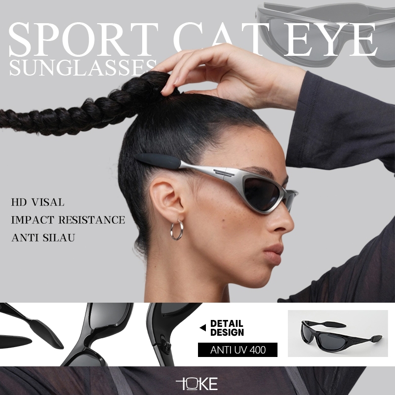 [TERLARIS]Kacamata Sport Cat Eye Trendy Y2K Retro Warna Hitam & Perak, Anti Sinar UV & Radiasi Outdoor Unisex Pria Wanita