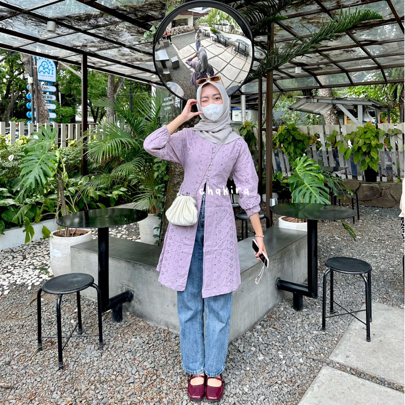 Tunik Lebaran Chea Tunik Cotton Bordir Atasan Wanita Untuk Kondangan