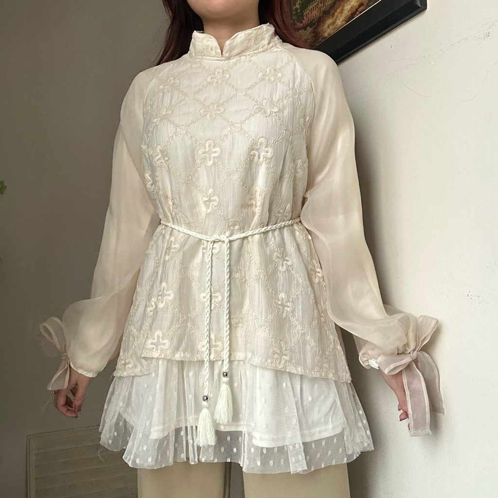 Atasan Wanita Yumna Top Blouse Tunik Wanita Kerja Renda Organdi Bordir Korean Style By Biel The Label