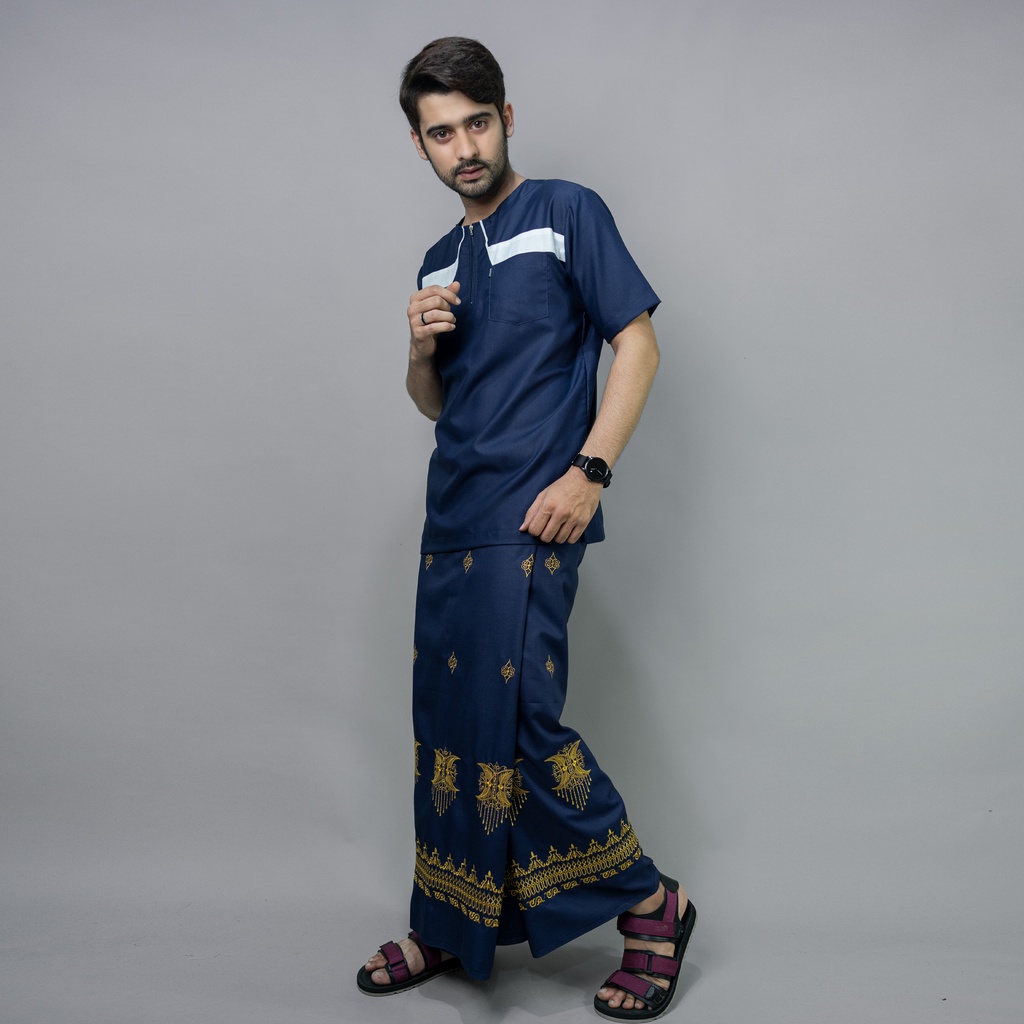 Katsae - Sarung Bordir Pintu Aceh Motif Timbul Keren Sarung Pria Dewasa Sarung Sholat 100% Bordir warna Navy