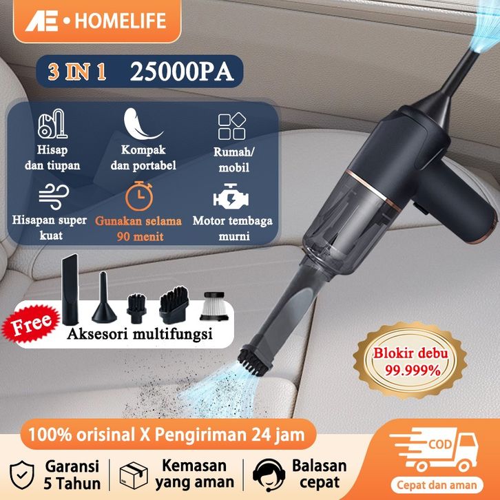 Vacuum Cleaner Portable badgeAE 3 IN 1 Mobil Penyedot Debu Mobil Vacum Multifungsi Rumah Rechargerable Cordl
