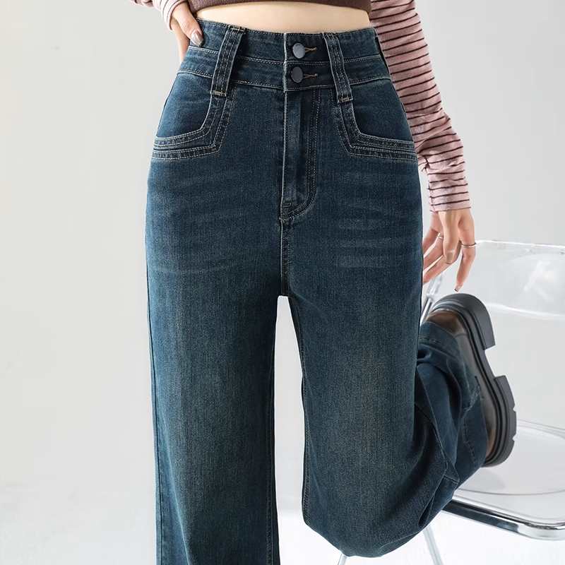 boll.id | Celana Jeans Kulot Biru Tua Cutbray Jeans Wanita Panjang Jeans Highwaist Loose Korean Style Wanita Celana Jean