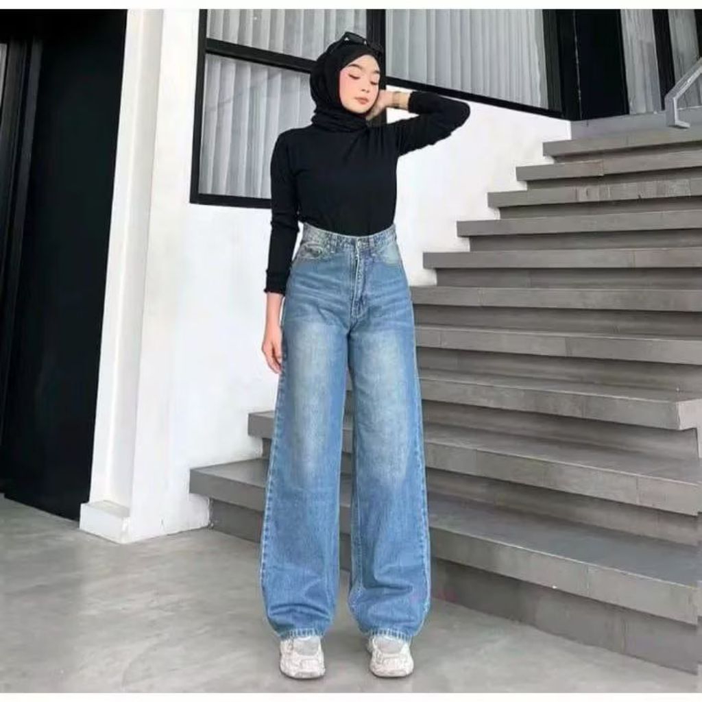 UNI Highwaist Baggy Jeans Hangover Oversize Loose Weekend Retro KOREAN BAGGY STRAIGHT JEANS
