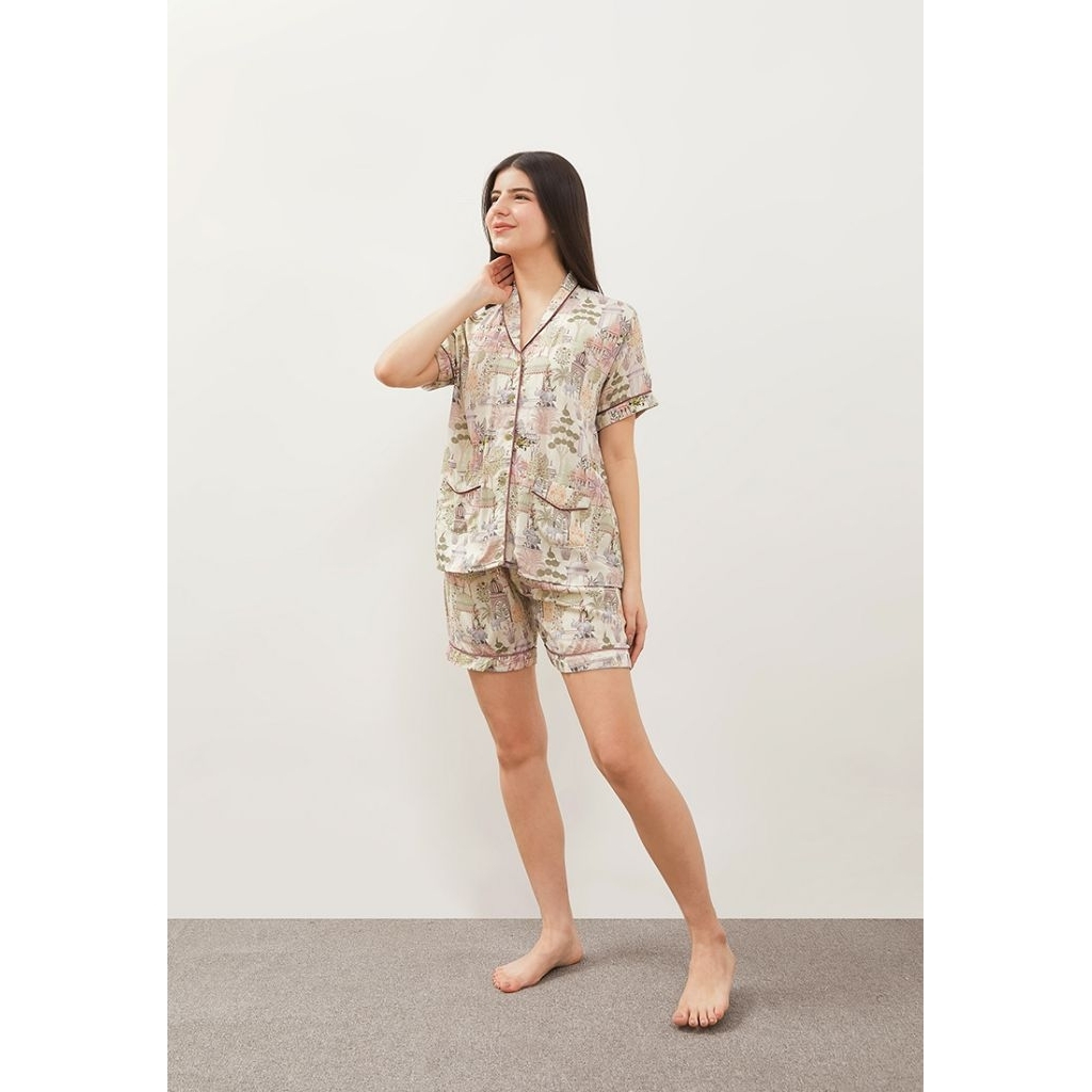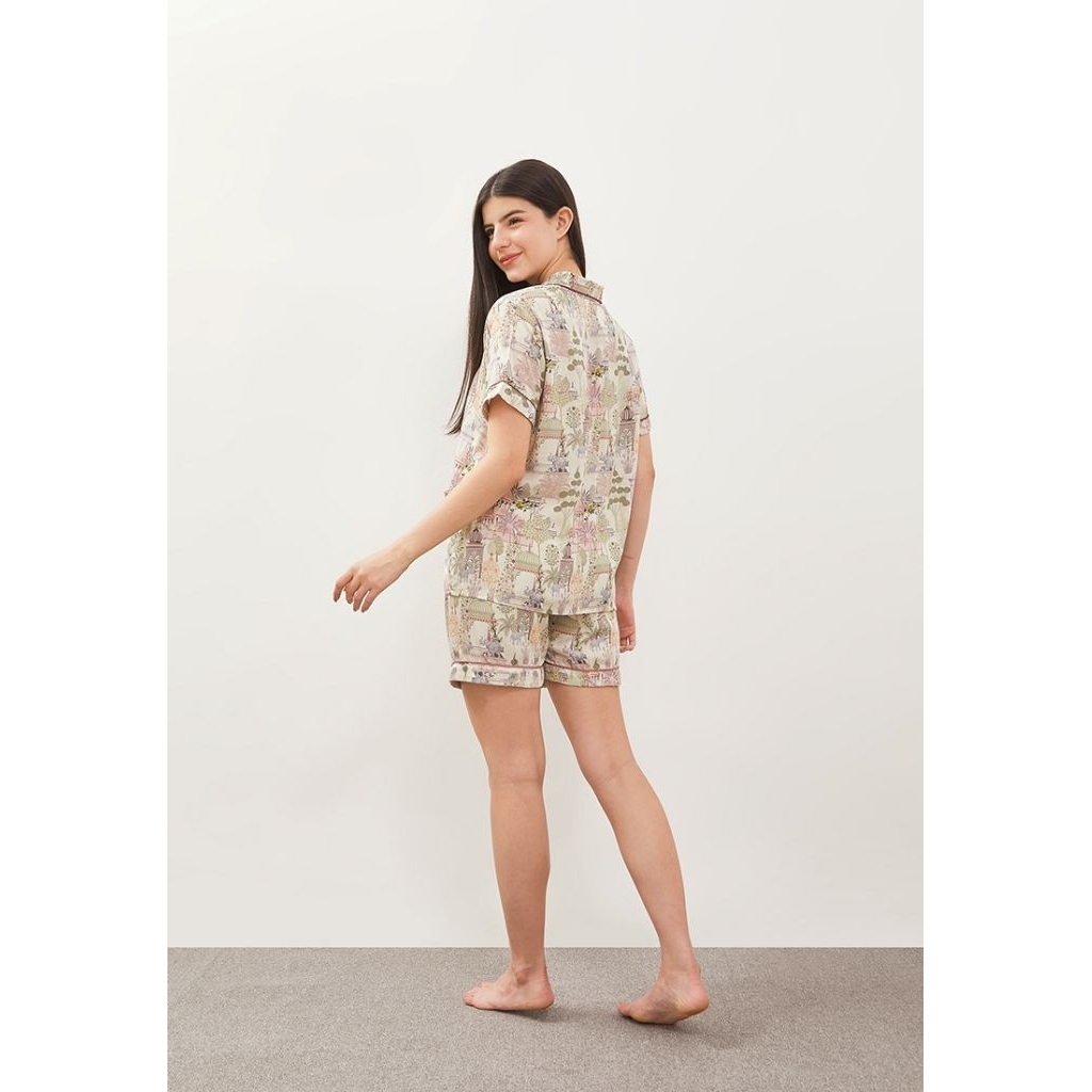 Blues & Blush Piyama Set Rayon Bumil Busui Friendly Motif Wanita Meg Lengan Pendek Celana Pendek