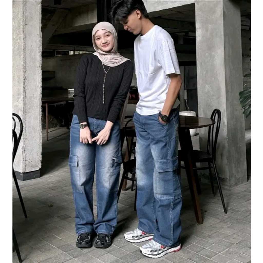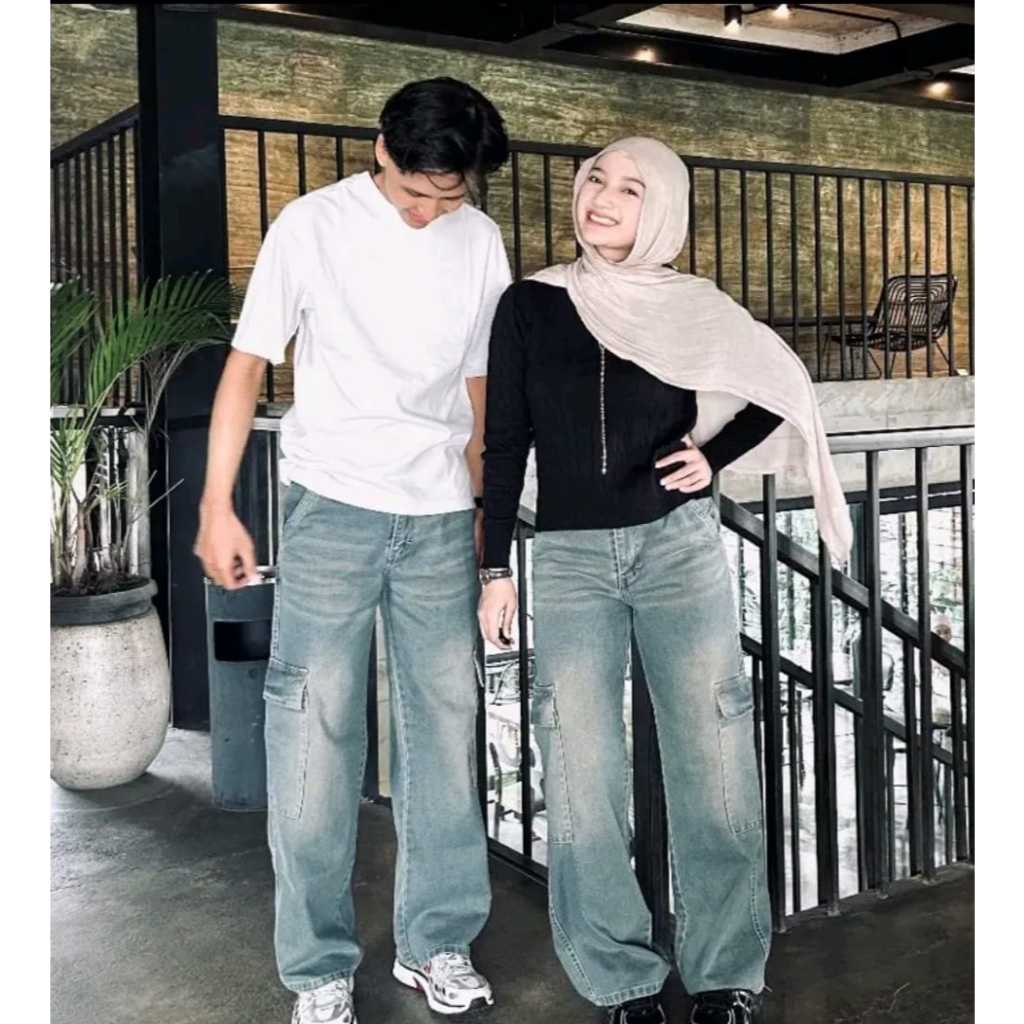 Celana Cargo Jeans Highwaist [UNI] | Korean Baggy Vintage Retro WANITA PRIA Loose Panjang