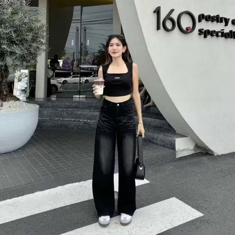 Baggyjeans Wanita Celana Kulot Jeans Loosepant Wisker