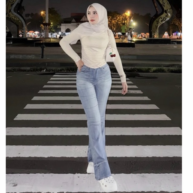 Highwaist Cutbray Streach Jeans Wanita Loose Vintage Retro