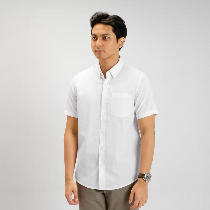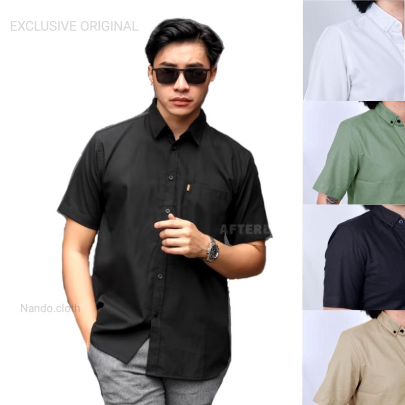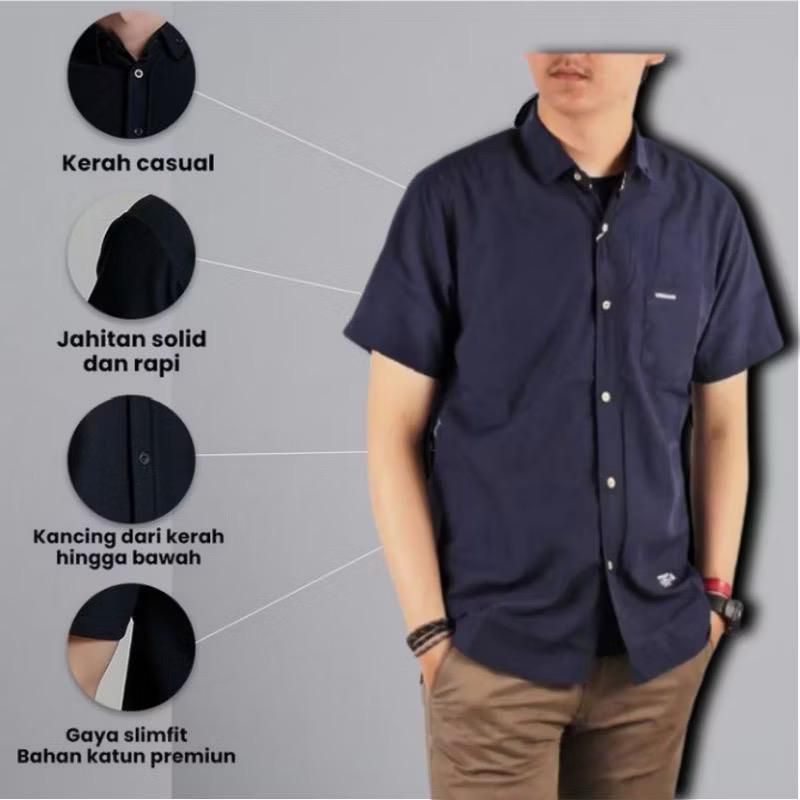 Kemeja Pria Dewasa Motif Polos Lengan Pendek Bahan Katun Premium Original