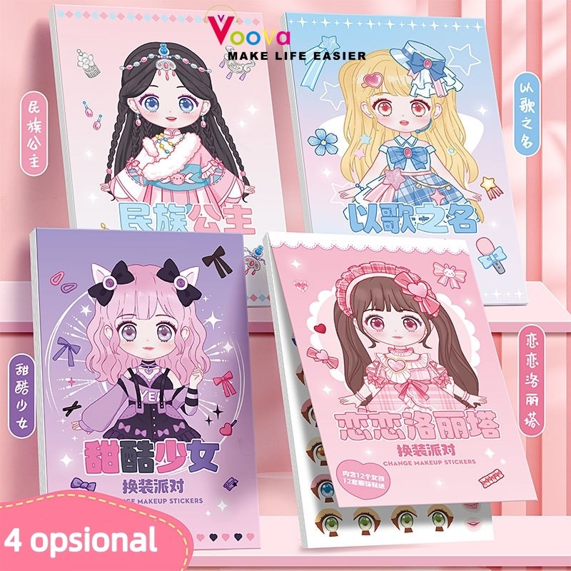 VOOVA Buku Stiker Dekorasi Anak/ Stiker Karakter Kostum/ Buku Stiker DIY Mainan Anak