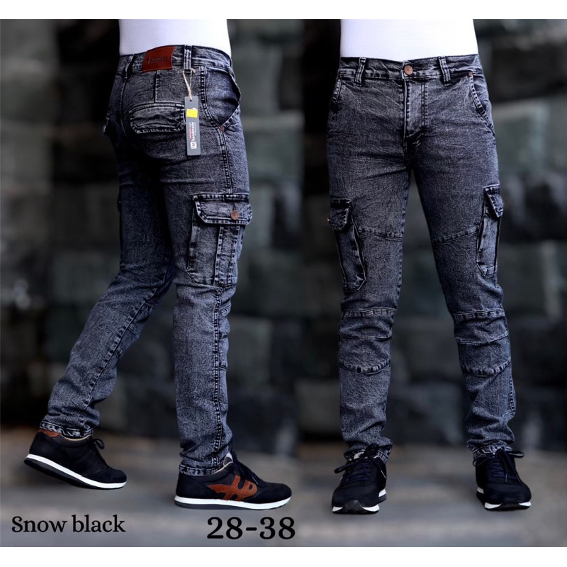 TERLARIS Celana Cargo Jeans Slimfit Pria Original – Denim Streatch Melar Paling Hits Terpopuler