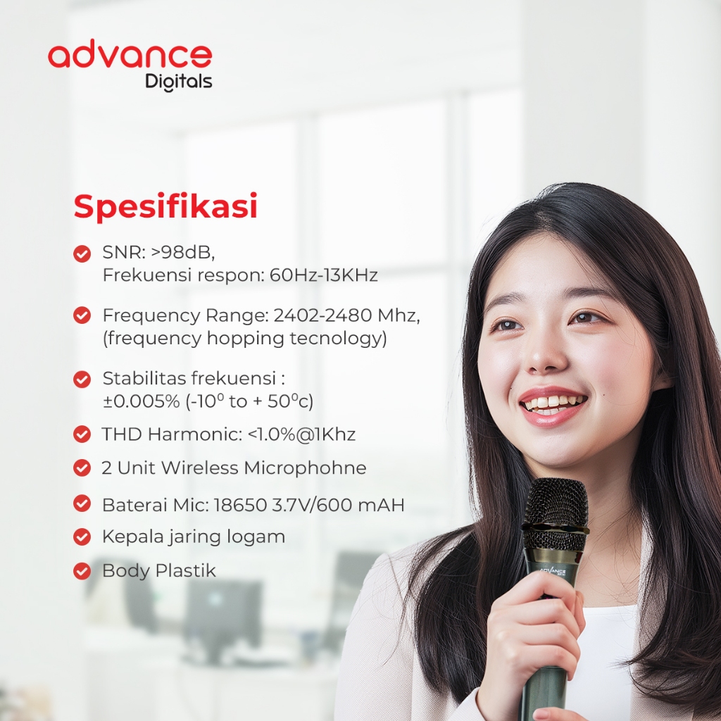 Advance Mic-207 Dual Microphone Wireless Anti Noise Garansi Resmi 1 Tahun