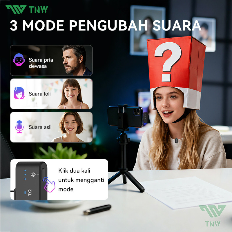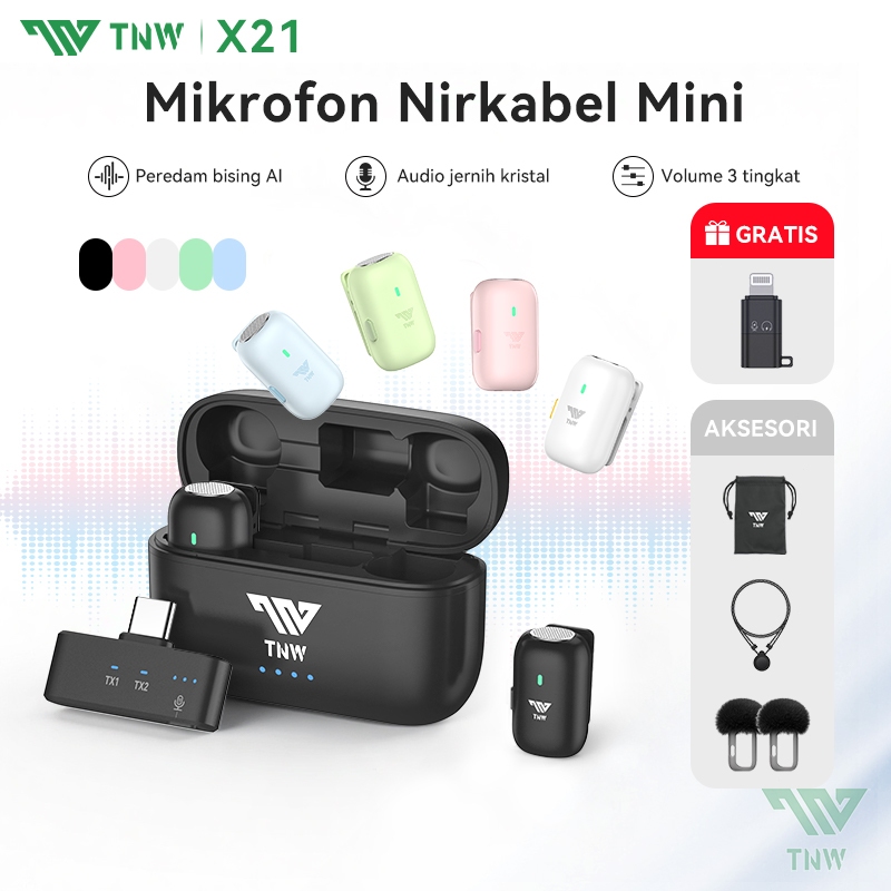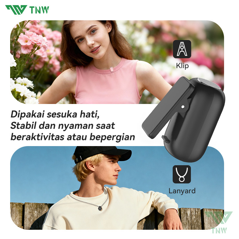 TNW X21 Wireless Microphone Mini Mikrofon Dual Lavalier Mikrofon Hidden Mic Plug & Play Clip On Mic Dengan AI Sound Card