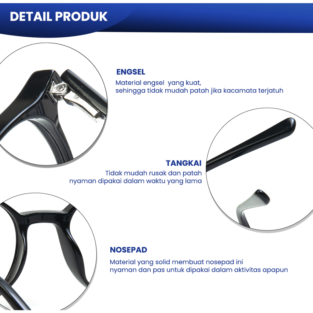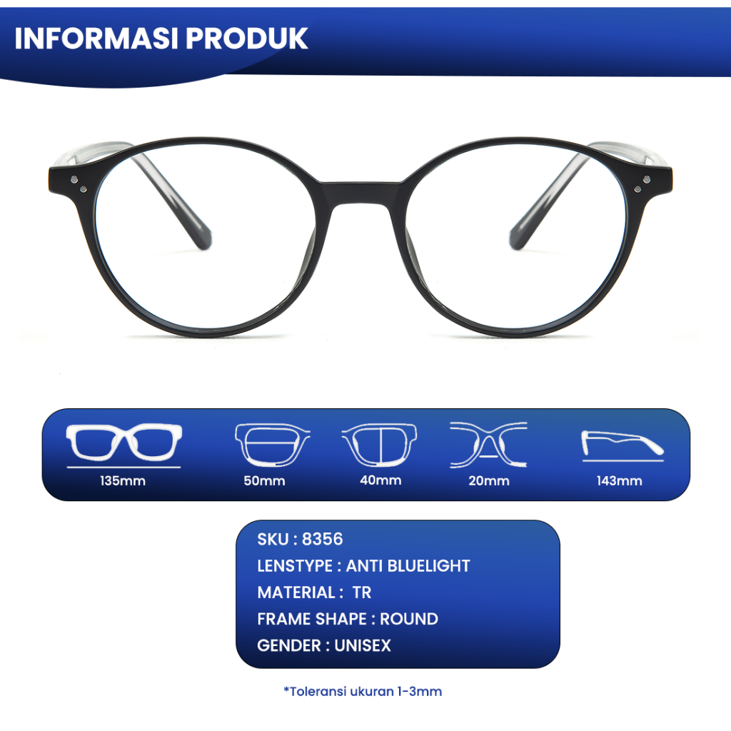 IOOI Eyewear - Kacamata Round Bahan TR Lensa Anti Radiasi Bluecromic Pria Wanita 8356