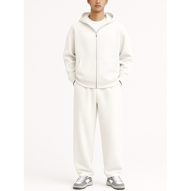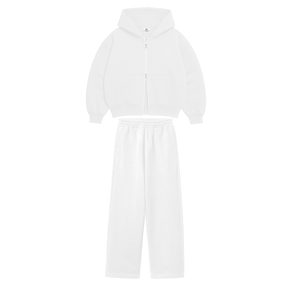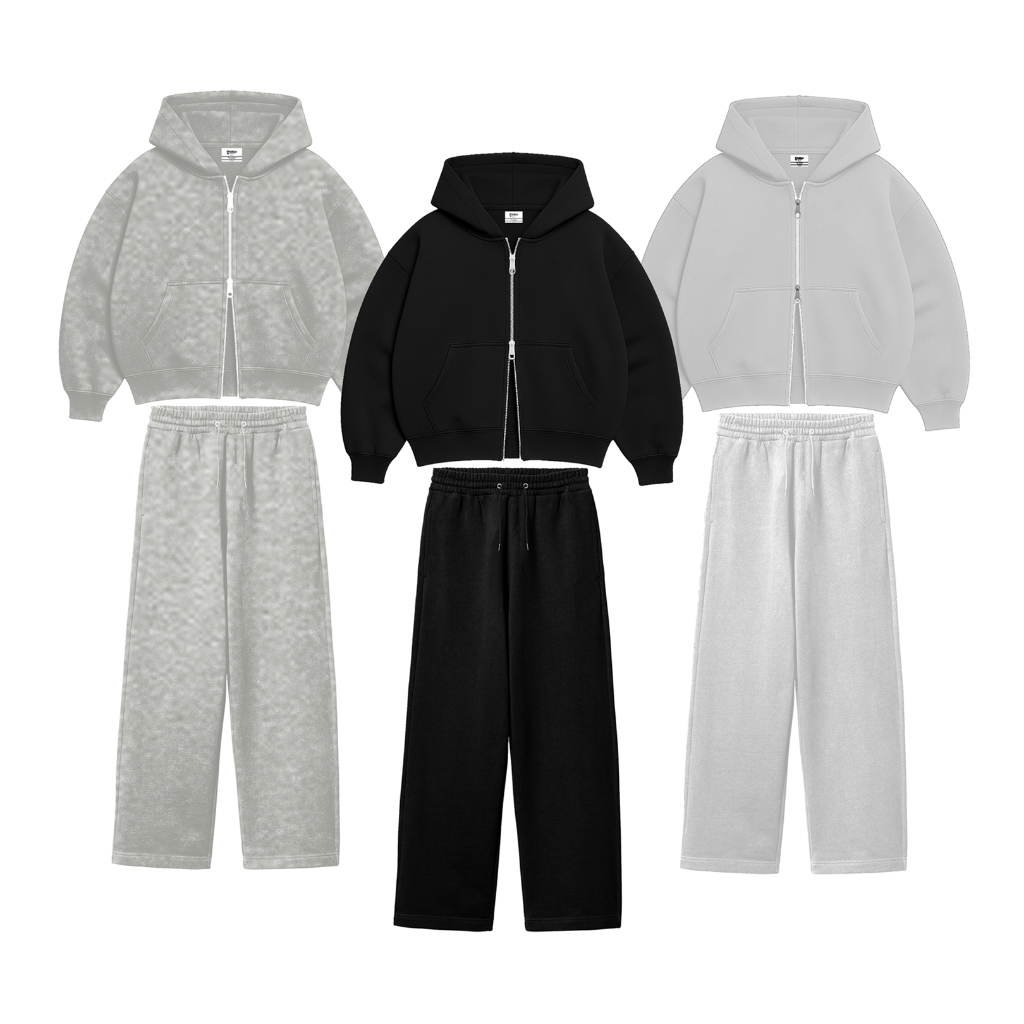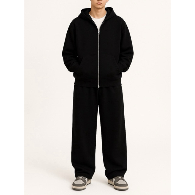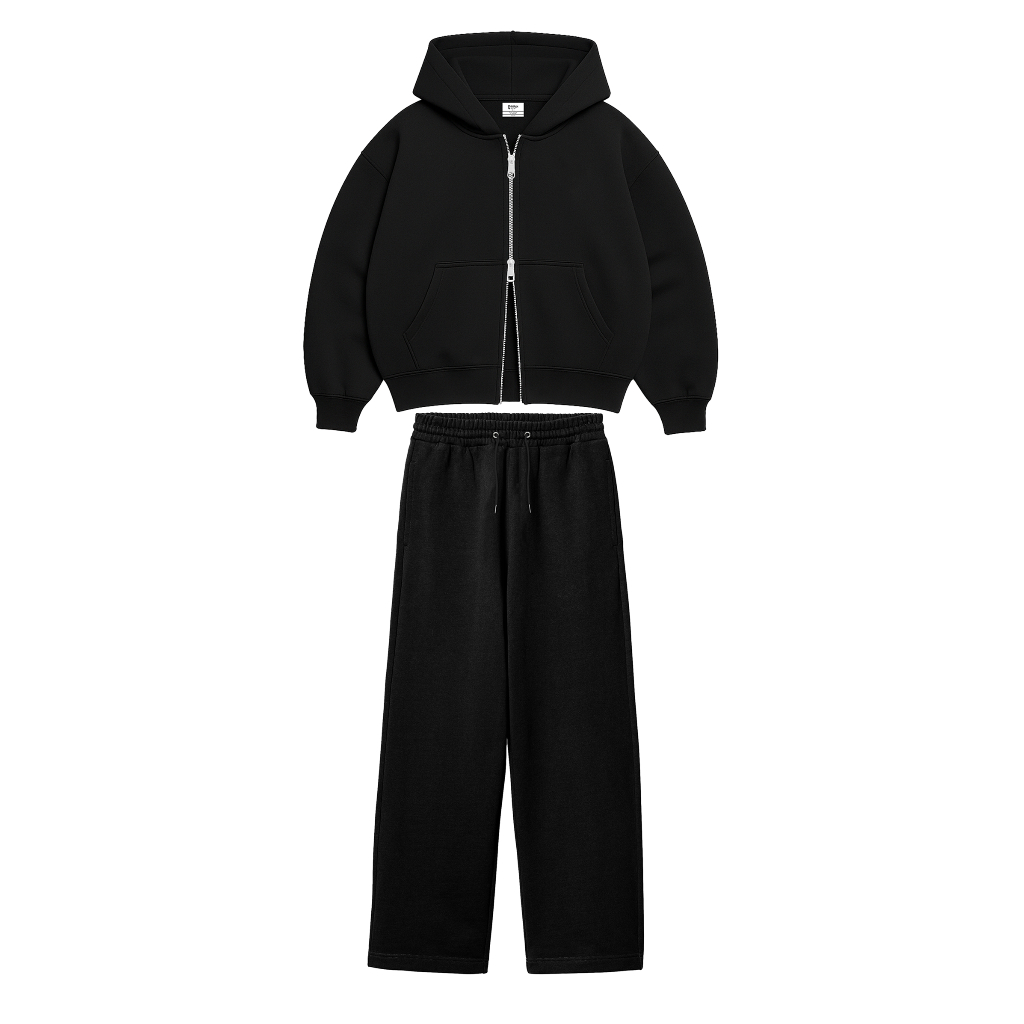 ONE SET DOUBLE ZIPPER BOXY HOODIE + BAGGY SWEATPANTS BASIC FLEECE