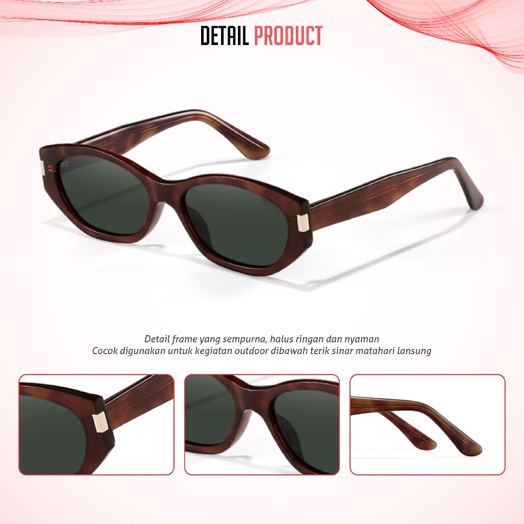 Bstins Kacamata Hitam Sunglasses Wanita Model Cat Eye Anti Silau UV400 Polarized Bahan Acetate Modern Style RX1025