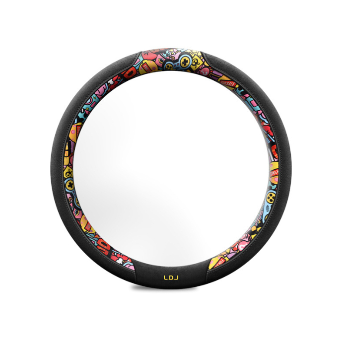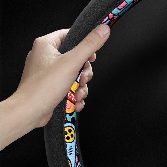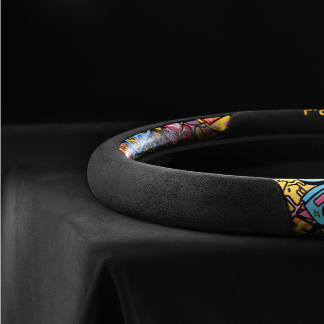 Sarung stir Mobil Cover Setir Mobil Motif Grafitty Bahan Suede Kualitas Premium