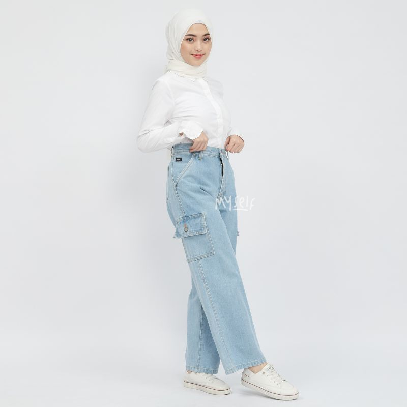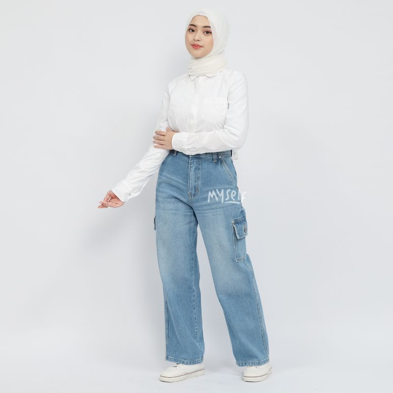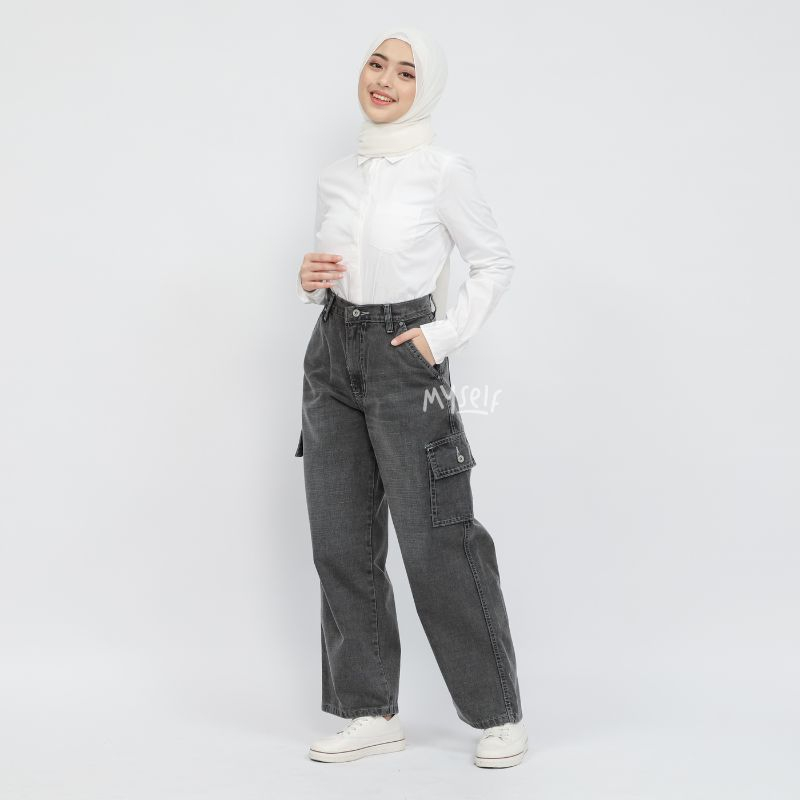 Myself Celana Highwaist Loose Cargo Jeans Wanita irish