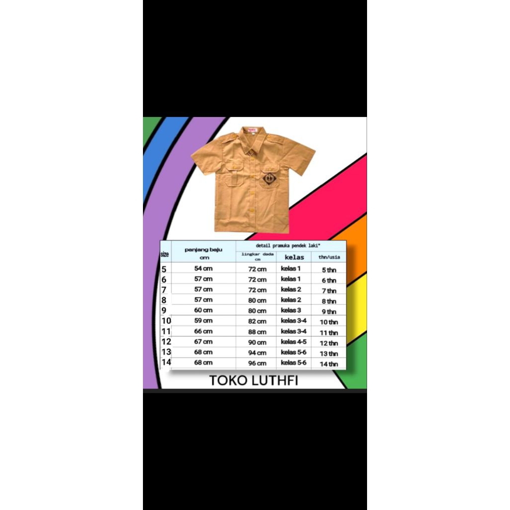 BAJU PRAMUKA LENGAN PENDEK SEKOLAH DASAR SD LAKI-LAKI UKURAN KLS1-6SD