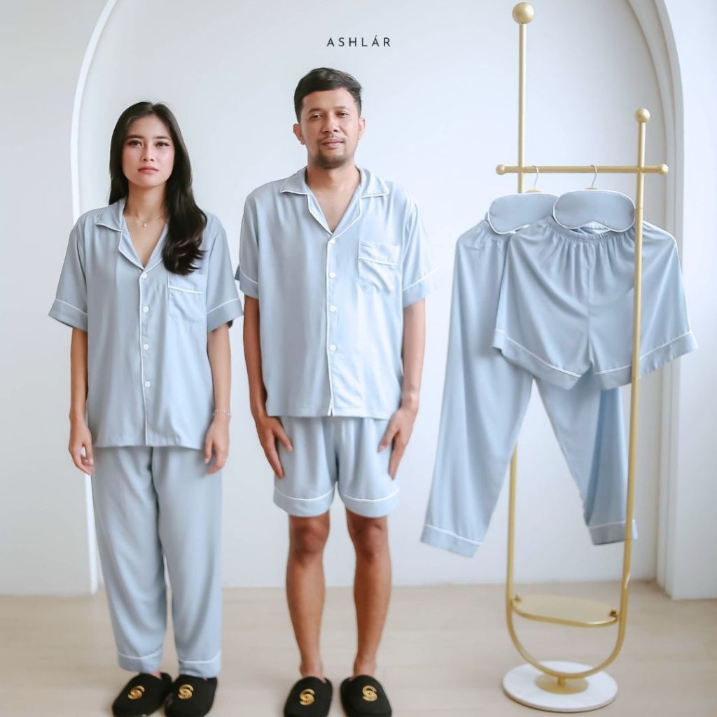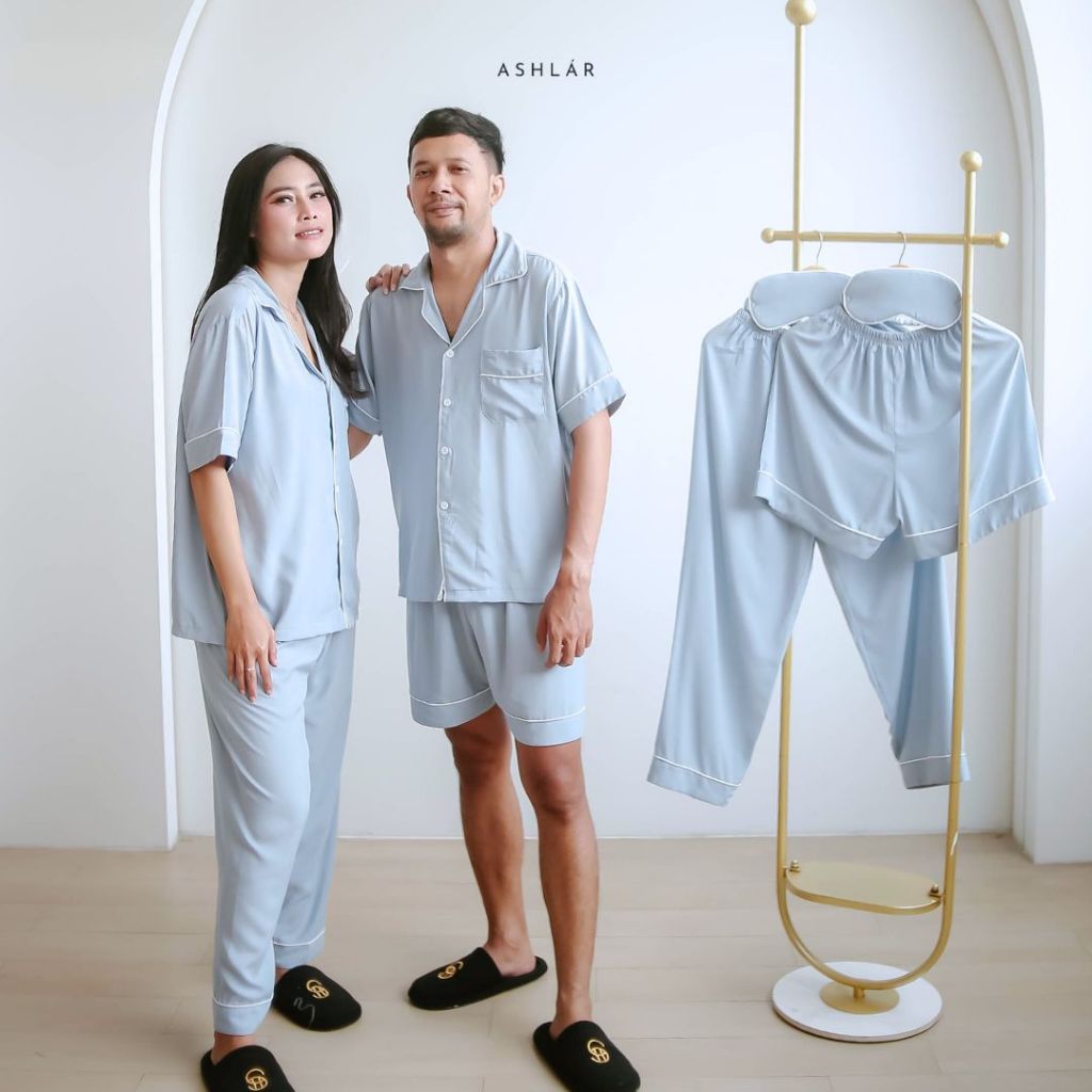 ASHLAR Piyama Couple Set Aleena Blue | Seserahan Pernikahan | Gift | Hampers | Wedding Gift