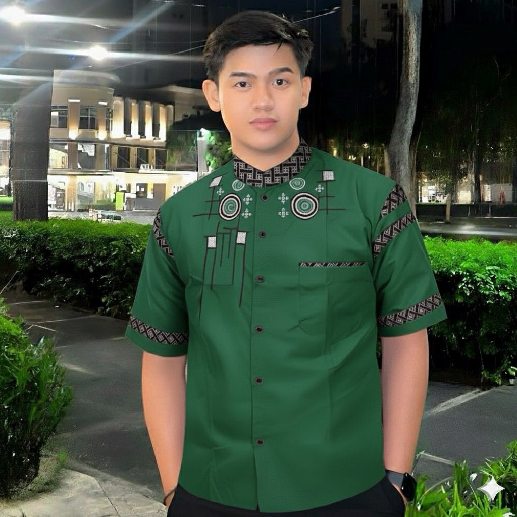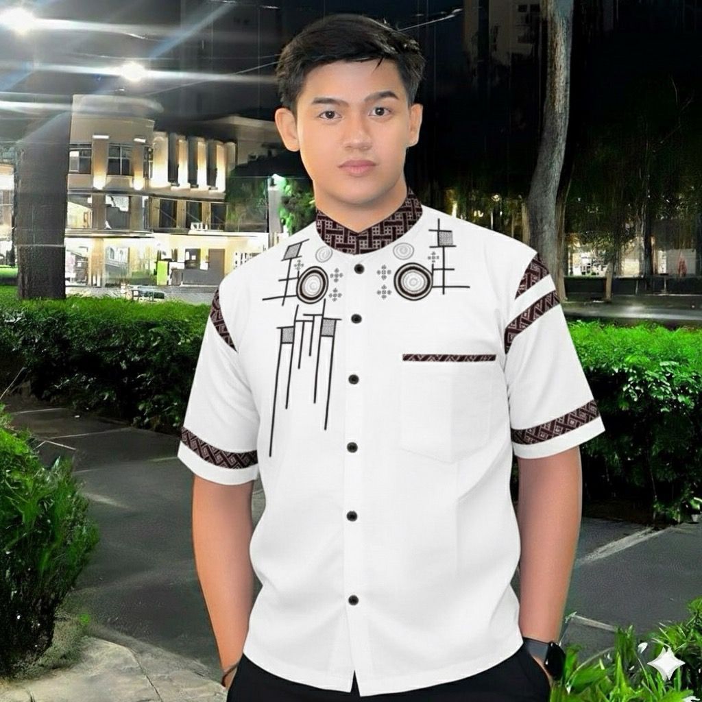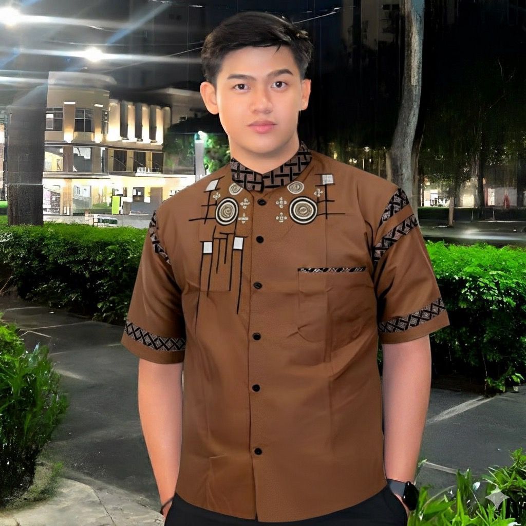 Bisa Kemeja Koko Lengan Pendek Pria Dewasa Motif Kombinasi Bordir Bahan Katun Premium