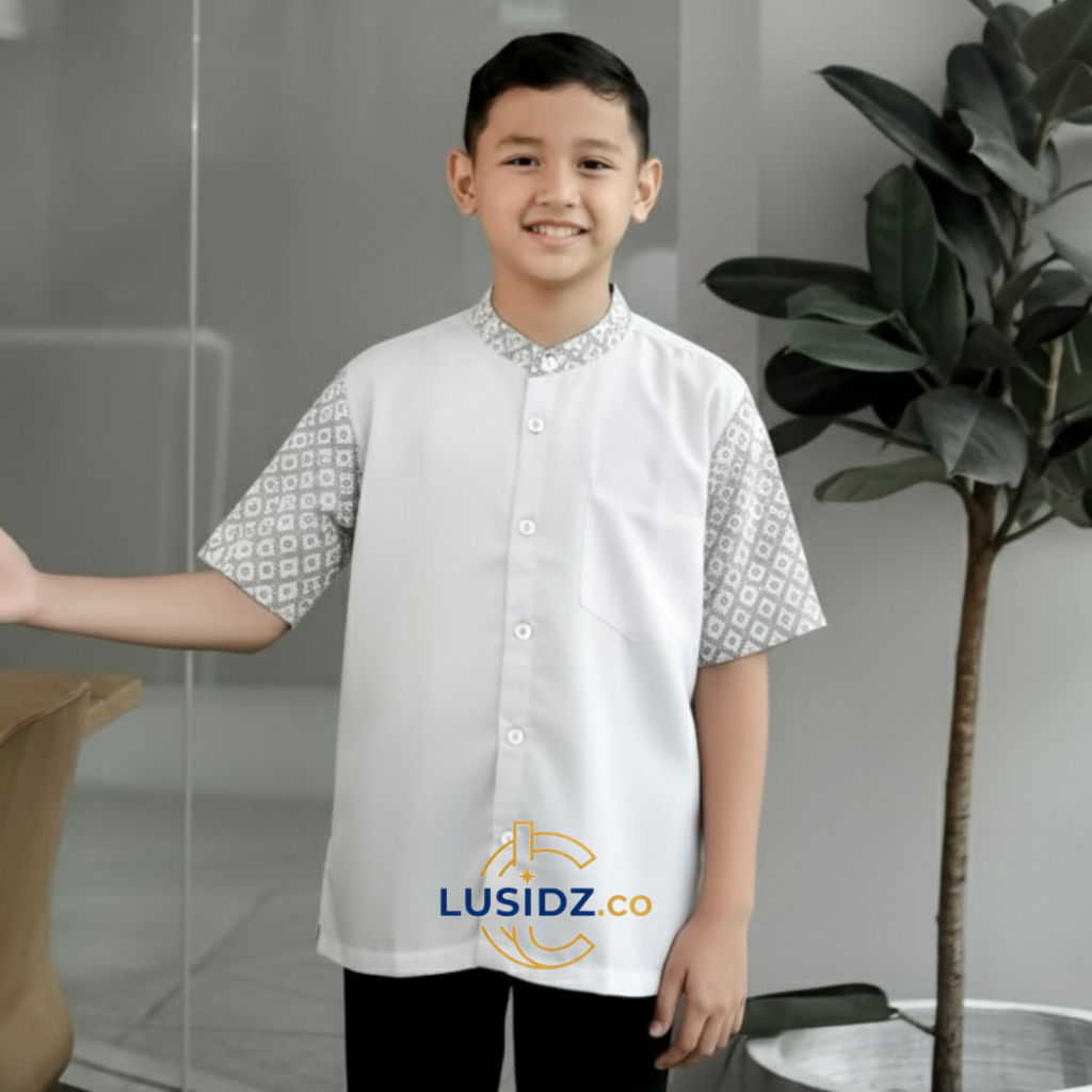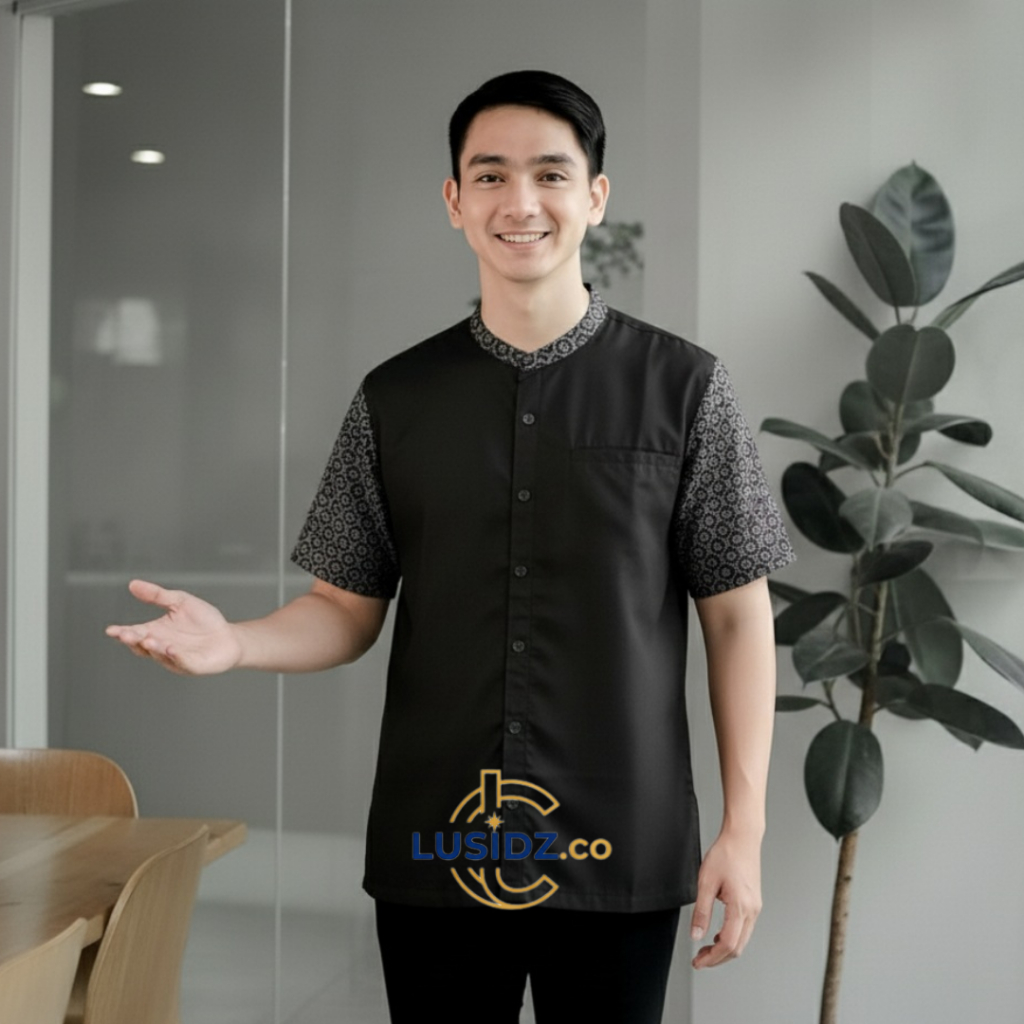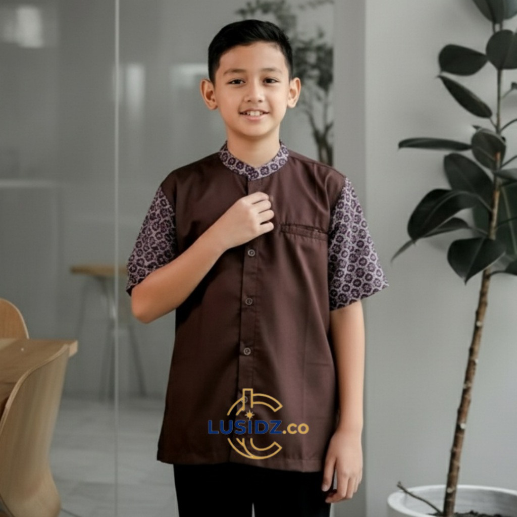 Baju Koko Muslim Pria Dewasa Lengan Pendek Atasan Kurta Motif Batik Bahan Katun Toyobo Warna Mahogany Burdy