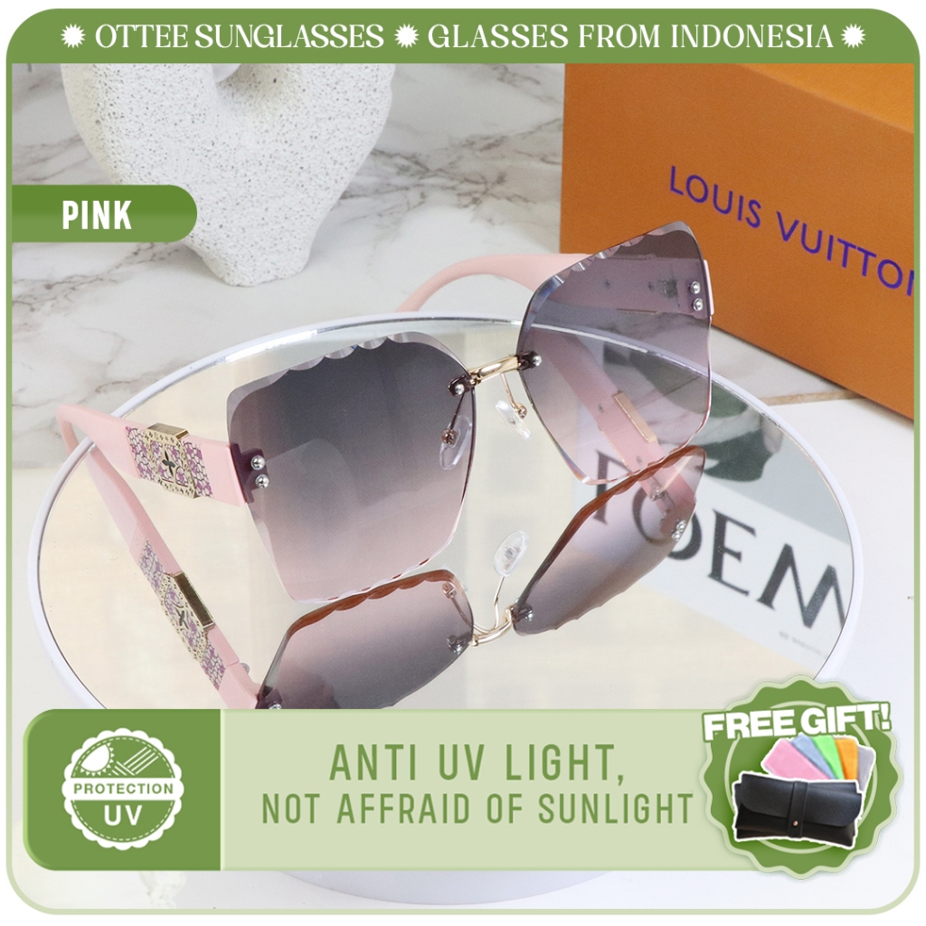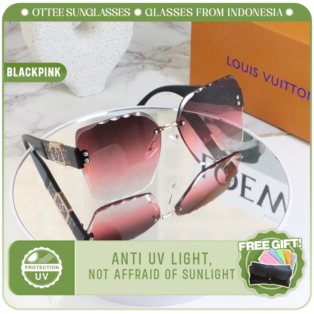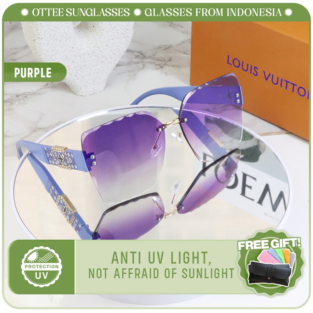 Tanpa kotak 【23055】Kacamata hitam wanita baru/Kacamata hitam tanpa bingkai modis/kaca mata anti uv
